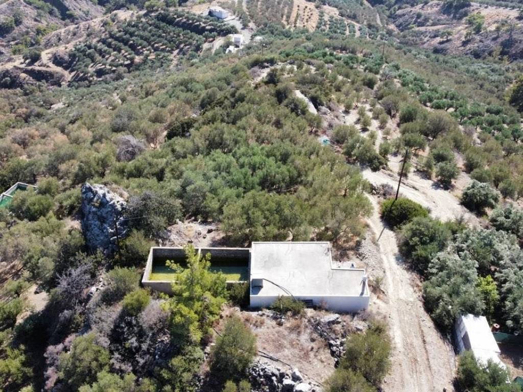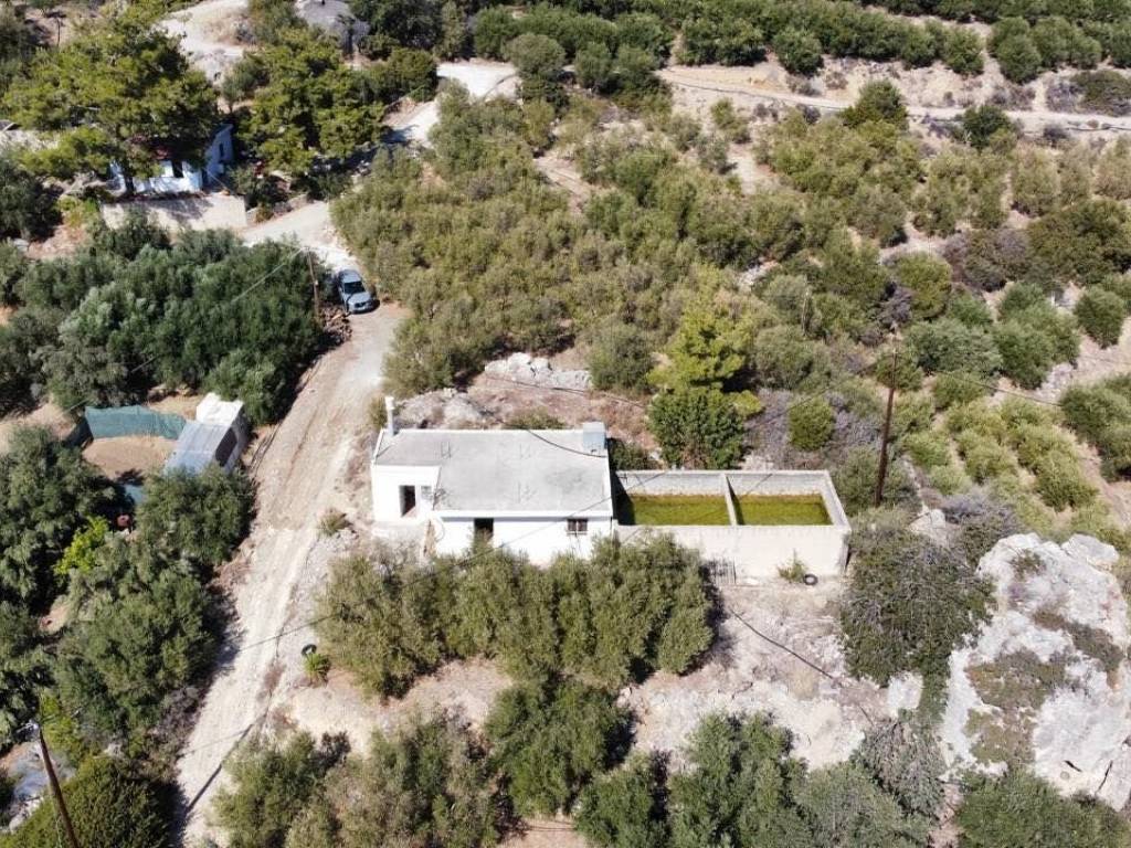 Πωλείται αγροτεμάχιο επιφάνειας τεσσάρων στρεμμάτων με 150 ελιές και μονοκατοικία 65 τμ, κατασκευασμένη το 2000. Το αγροτεμάχιο διαθέτει, επίσης, στέρνα 100 κ.μ. και βρίσκεται κοντά στους Μύθους της Ιεράπετρας. Η πρόσβαση γίνεται από χωματόδρομο. Κατάλληλο για αγροτική, οικιστική χρήση και φωτοβολταϊκά. For sale: a 4,000 sq.m. plot of agricultural land with 150 olive trees and a 65 sq.m. detached house, built in 2000. The property also includes a 100 cubic meter water cistern and is located near Mythoi, Ierapetra. Access is via a rural road. Suitable for agricultural use, residential use, and photovoltaic installation.