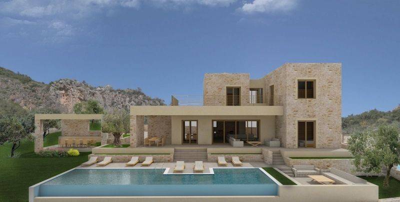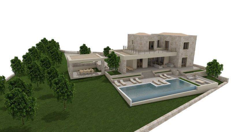 We present to your attention luxury villas in Neochori, Mani, Peloponnese. Each house has three levels: on the lower level there is a large bedroom with a bathroom and a wine cellar with a place for tastings, as well as a gym. Inside the engine room there is a storage and water tanks in case of water supply interruptions. On the ground floor there is a spacious living room, kitchen and dining area, bathroom, bedroom and guest toilet. On the second floor there are two master bedrooms with private bathrooms. A heated swimming pool and a landscaped garden with relaxation areas will be located on the spacious grounds. Also outside, under the canopy, there will be a built-in barbecue with a dining area and a mini-kitchen with cupboards, a place to store things, a refrigerator and a sink.
