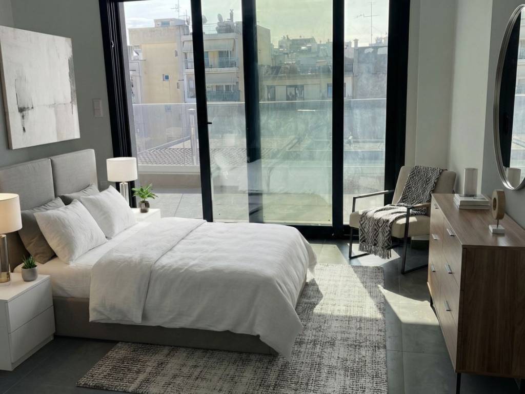 In the area of Agios Panteleimonas, a breath away from the center of Kalamaria, a maisonette of 170 sq.m. is available in a newly built luxury building. The maisonette is located on the seventh floor and the attic of the building, where on the seventh floor we find a spacious living room, separate kitchen, an office and a WC. Going up the internal stairs to the attic there are three more bedrooms and a main bathroom and another WC. There is also space outside the bathroom for a washing machine. All rooms and the living room-kitchen area have access to a balcony. Underfloor heating with an individual natural gas boiler is installed in the property. As auxiliary spaces of the property there is a parking space and a storage room. Location: Kalamaria is located in the southeastern part of Thessaloniki. Unique Features: Kalamaria is characterized as the “Riviera of Thessaloniki” and is an area with vibrant life and a unique character. A characteristic feature of Kalamaria is the Marina, which attracts people of all ages who wish to enjoy a walk and exercise. Kalamaria is famous for its quite large market and the vast range of options it offers in terms of dining. Accessibility: Kalamaria is only 7.5 kilometers from the center of Thessaloniki and 12 kilometers from the airport, and is served by several bus lines of OASTH. Investment Power: The particularly vibrant lifestyle of Kalamaria and its excellent location next to the sea help it maintain high investment interest.
