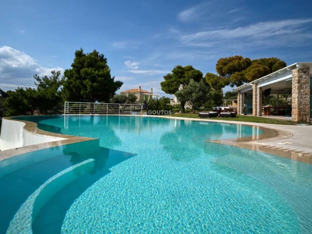 In the prestigious area of Ververonda, a magnificent villa complex is available for sale, consisting of two independent buildings with a total living space of 550 sq.m., set within an impressive private plot of 11,700 sq.m. Built in 2006 and maintained in excellent condition, the residences combine modern comforts with timeless luxury, offering the perfect setting for a serene and prestigious lifestyle. The complex extends across three levels – ground floor, first, and second – and provides nine spacious bedrooms, eight of which are master suites with en-suite bathrooms, along with ten bathrooms in total and two elegant living rooms designed for both relaxation and entertaining. The architectural design ensures brightness and comfort throughout the year, enhanced by the southeast orientation and the unobstructed panoramic views of the sea. Situated only 800 meters from the shoreline and 2.5 hours from the airport, the property enjoys both privacy and accessibility. Constructed with high-quality materials, the villas feature tiled floors, aluminum frames with double-glazed windows, and an energy efficiency certificate of class B. Heating is autonomous per level, supported by an oil system, while air conditioning, a solar water system, and a boiler ensure year-round convenience. Outdoors, the estate is equally impressive, with beautifully landscaped gardens adorned with grass and trees, complemented by an automatic watering system and a private water borehole. A large swimming pool with Jacuzzi, spacious terraces with tents, and a fully equipped BBQ area create the perfect environment for leisure and entertainment. Six open-air parking spaces provide ample convenience for residents and guests alike. The complex is also fitted with numerous modern amenities, including security doors, an alarm system, CCTV, satellite receiver, window screens, storage rooms, and internal staircases, while internet connection and night stream supply further enhance everyday living. Designed as a true mansion, this property exudes elegance, brightness, and luxury, making it ideal both as a permanent residence or as a high-end holiday retreat. This rare opportunity in Ververonda offers not just one but two luxurious residences, surrounded by nature and sea views, creating a unique haven of comfort and exclusivity in one of Greece’s most desirable coastal destinations.Price: €2.250.000. Goutos Properties, contact phone: 2109715711, email: sales@goutos.gr, website: