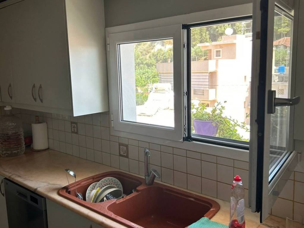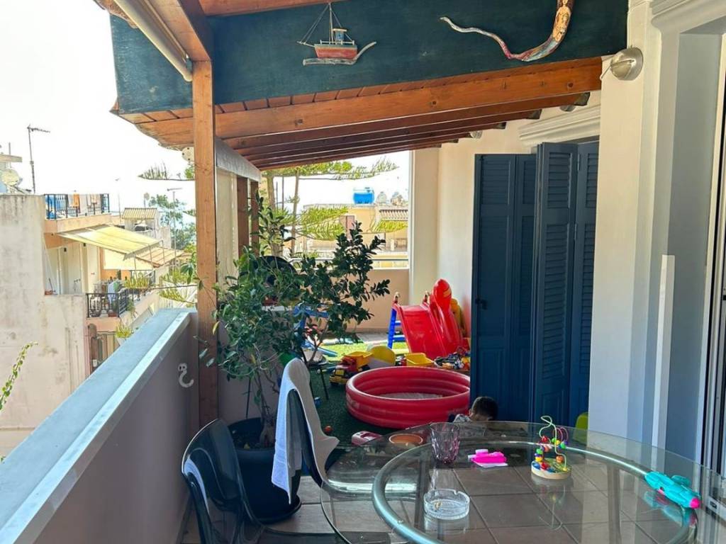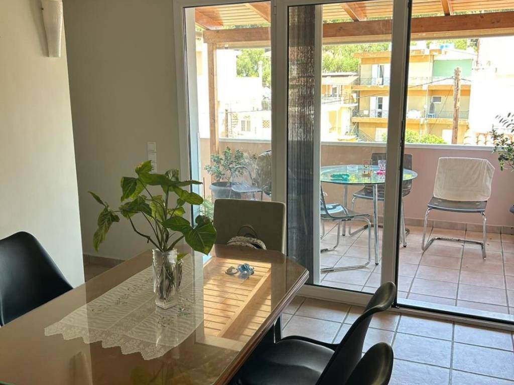 Third-fourth floor maisonette in the Agia Triada district of Zakynthos town, near the first elementary school and the municipal beach of the Greek National Tourist Organization, in a very quiet neighborhood. It will be available from March 2026 It has a living room, dining room, large separate kitchen recently renovated. Large covered balcony of 30 sq m with hill and sea view suitable for outdoor dining and living room. Bedroom with desk and lots of storage space, with renovated wooden floor and its own large bathroom on the fourth floor. Second large bedroom with its own toilet and balcony on the third floor as well as a guest WC. All balconies have awnings. The maisonette is airy with very bright rooms with a perfect layout and occupies the entire third and fourth floor of the building. Security entrance door, balcony doors and aluminum windows with screens. Autonomous oil heating, three air conditioners and an energy fireplace with a covered wood storage area on the ground floor. Video door entry, hill and sea view, elevator that ends inside the house. It does not have parking. Pets are not allowed.