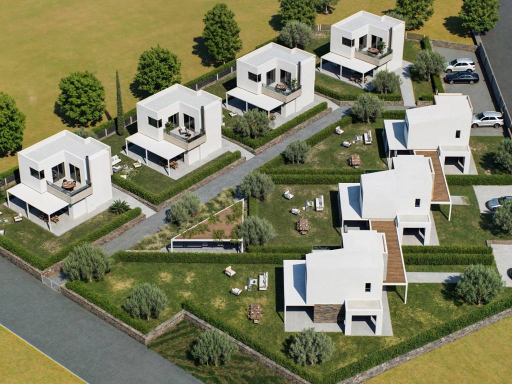 Independent country houses under construction, built on a unique seaside plot in Marathonas, Aegina. The houses are 100m2 in size, developed on two levels, ground floor and first floor. Each has from 500m2 to 700m2 of plot for exclusive use and parking spaces. Energy class A+.