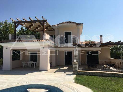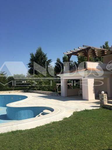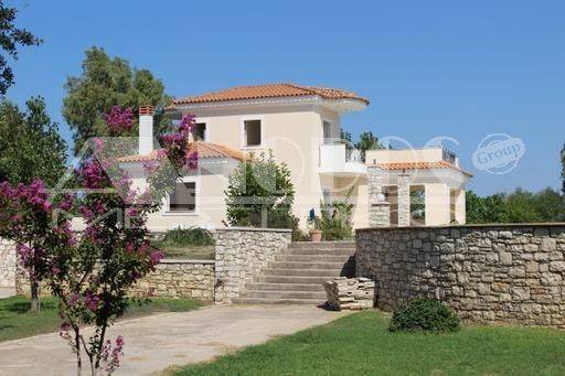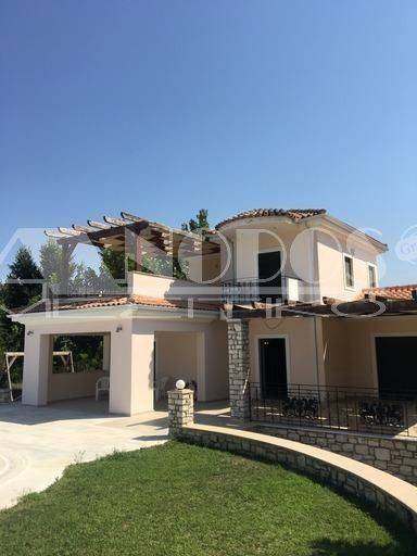 AMALIADA, Kouroutas - Semi-detached house 582sqm on a plot of 12000sqm, 3 bedrooms, 3 levels: basement (171sqm) - ground floor - 1st, built in 2007, energy class A+, living room, kitchen, 2 bathrooms, independent heating (fan coil), air conditioning , one closed parking space, quiet, airy, bright, electric shutters, storage room, fireplace, terraces, large terraces, garden, aluminum frames, double glazing, screens, floor type tile & wood, luxurious, swimming pool, residential zone, price negotiable. The two maisonettes in the area of Kouroutas are built on a plot of 12 acres. The maisonettes are on three levels with 119.74 sq.m., ground floor - first and 171.40 sq.m. basement with access for a car. one maisonette is finished habitable and the other is unfinished at the stage of plastering inside and outside it is finished and painted. Each maisonette has a living room, kitchen, 1 bedroom, bathroom on the ground floor and 2 bedrooms and bathroom on the 1st floor. They have independent oil heating and Fan Coil connection. Between the residences a wonderful swimming pool of 160 sq.m. and all kinds of trees, apple trees, pomegranates, pears, olives, lemon trees, vines, all with automatic watering from boreholes. Stone terraces and paving stones lead to quiet corners with benches and flowers for relaxation and rest. The estate is almost entirely lawned (it has a small car for mowing) is building two other maisonettes and is 2.5 km from the beach of Kourouta and 2.8 km from Paralia Marathia, 25 km from the port of Katakolo (cruise ships dock) and 30 km from the port of Kyllini with connection to Zakynthos and Kefalonia Price €680,000 (code A111596) 210 9923740, 6970 307740 ANODOS GROUP Real Estate