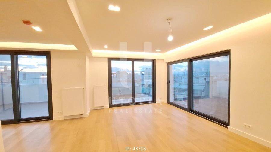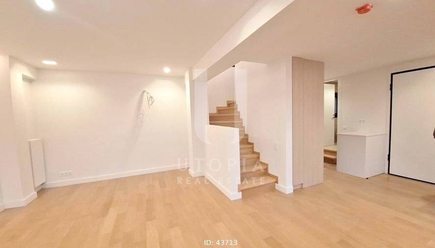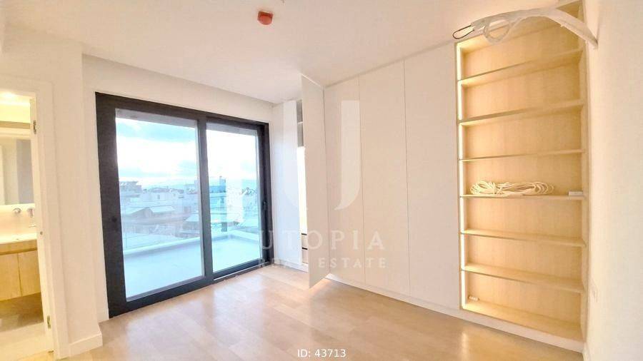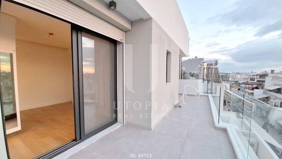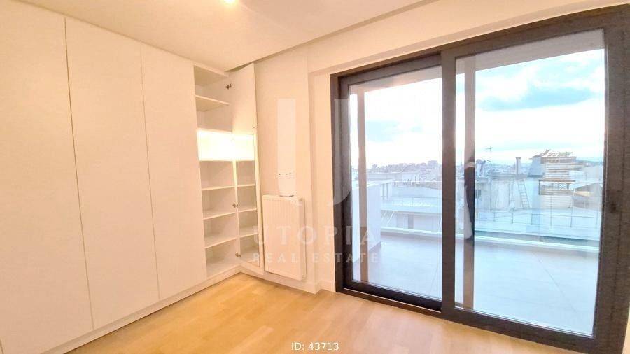 Pangrati - Maisonette 96sqm bedrooms 2, master bedrooms 2, levels 2, 7th - 8th, newly built, year built 2024, energy class A, living room, hall, kitchen, 2 bathrooms, wc, heating type: autonomous (heat pump), air condition, parking covered, quiet, dual aspect apartment, luminous, frontage, external thermal insulation, balconies, balcony 44sqm, elevator, aluminum frames, double glazed windows, door screen, wood & tile floors, three phase electricity, secure door, alarm, video doorbell, internal staircase, residential zone, east-western orientation.