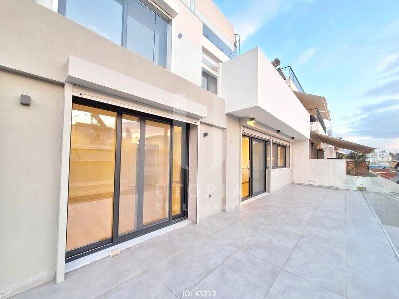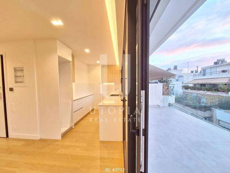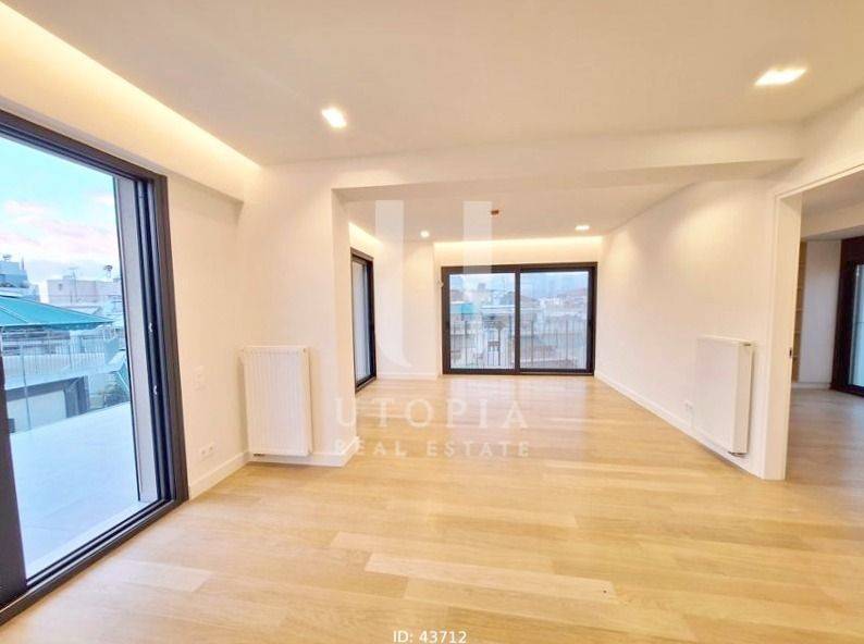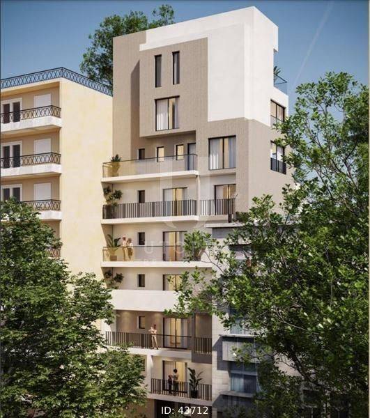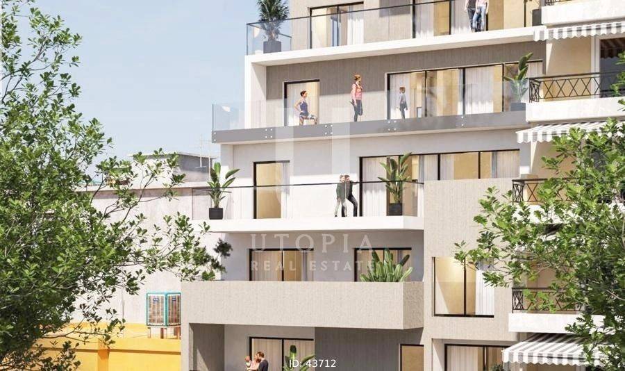 Pangrati - Apartment 66sqm bedroom, master bedroom, levels 1, 6th, newly built, year built 2024, energy class A, living room, hall, kitchen, bathroom, wc, heating type: autonomous (heat pump), air condition, parking ground floor, quiet, dual aspect apartment, luminous, frontage, external thermal insulation, balconies, balcony 44sqm, elevator, aluminum frames, double glazed windows, door screen, wood & tile floors, three phase electricity, secure door, alarm, video doorbell, residential zone, east-western orientation.