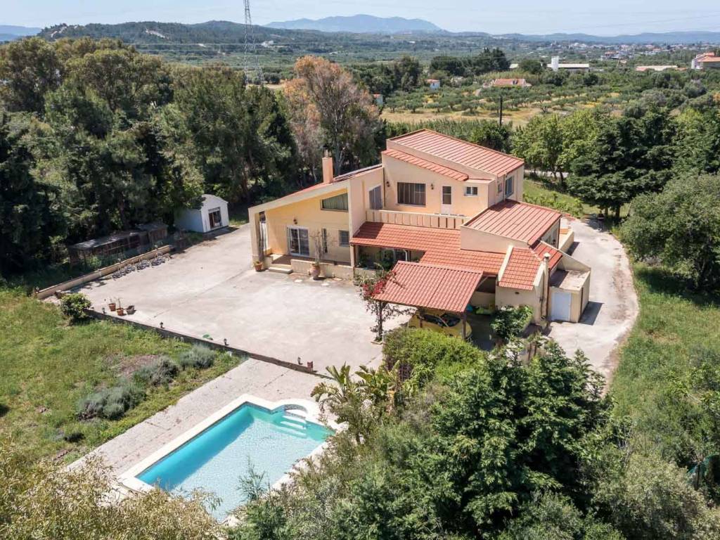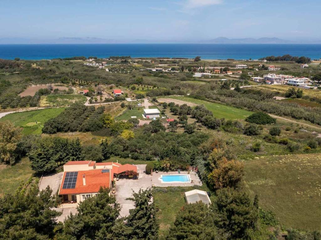 This magnificent villa, set within a 5,000 sqm plot surrounded by trees and natural beauty, is a 20-minute walk from the sea and just a 5-10 minute drive from the airport. It offers numerous large indoor and outdoor spaces, with an exotic courtyard and pool. It comprises five bedrooms and five bathrooms, a living room, dining room, office, and gym. Outside there is a laundry room, storage room, greenhouse, and covered parking space. Location: Theologos is one of the most visited villages on the west coast. Only 20 km from the city of Rhodes and approximately 5 km from the airport. Unique features: It is an ideal destination for a relaxing getaway but still close to the city. Offering a variety of dining options along with the quiet yet vivid nightlife it is a great destination for family time. Accessibility: A regular bus service and a 30 minute drive from Rhodes town. Investment potential: Considering the blooming kite surfing industry which attracts people from all over the world every year, Theologos is the perfect location for investment properties.