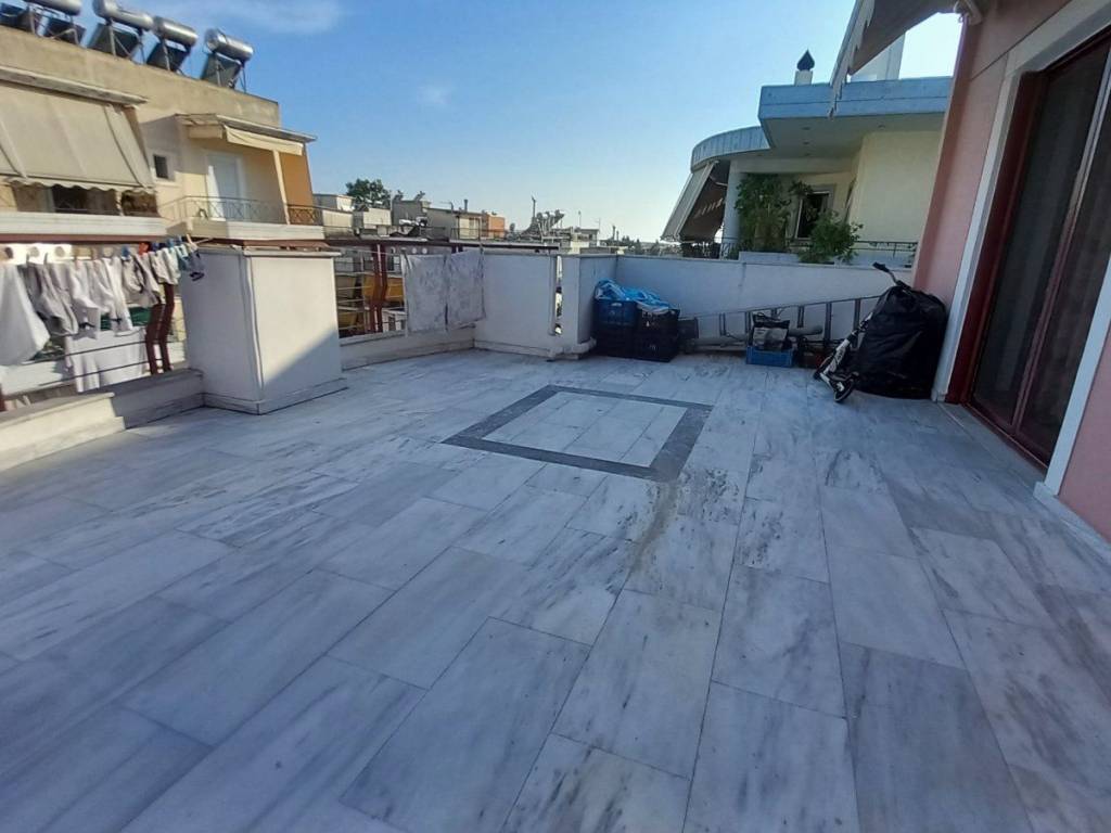 A unique fourth-floor apartment (penthouse) is available for sale. It is in excellent condition and has large perimeter terraces with awnings. It is located in a privileged area and it's 110 sq. m. It has a living room, dining area, kitchen, two spacious bedrooms, one bathroom, one WC, wooden floors and in-wall heating. The apartment is located about 1 km from the "Kyani Akti" beach and 10 minutes from the historic city center on foot. It has a solar water heater, aluminum frames, and autonomous heating (oil). There is also a supermarket just below the building.