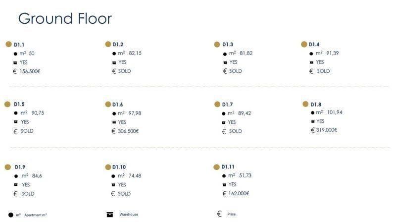 • 29 Διαμερίσματα από 74,28τ.μ. έως 101,94τ.μ, που αποτελούνται από σαλοκουζίναι, 2 υπνοδωμάτια, 1 μπάνιο.