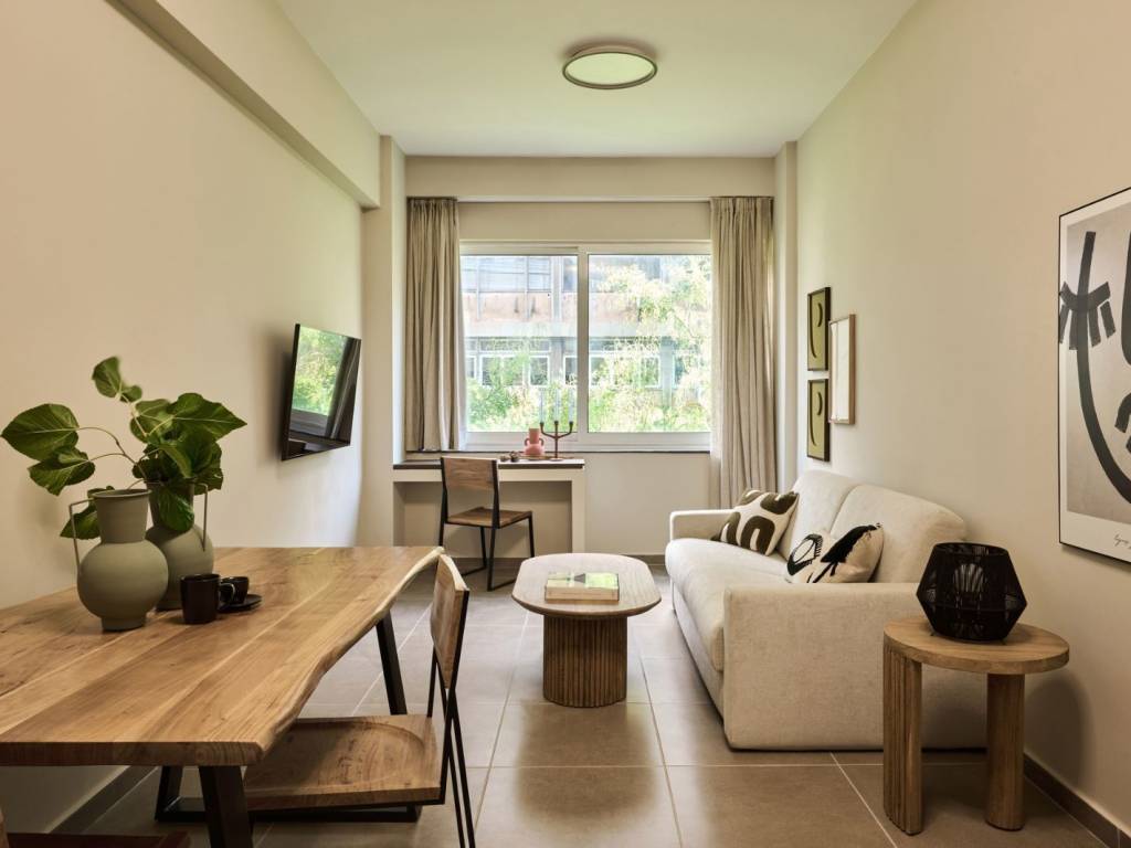 The apartment is actually two apartments in one. It is located on the 4th floor of a multi-use building. They share a common main entrance and a shared foyer-hallway, allowing them to be used either as separate units or together, making them ideal for two families. The apartment facing the front of the building consists of a master bedroom, a living room with a sofa bed, a dining area, and a kitchenette. It is spacious and bright, comfortably accommodating up to four guests. The second apartment features two bedrooms, one with a double bed and the other with a single bed, as well as a living room with a sofa bed, a bathroom, and a dining area with a kitchenette. This unit is also spacious and well-lit, offering a comfortable stay. Both apartments are for sale as one unit. Currently both apartments are operated as a short-stay apartments under the Hospitality Management Company http://www.visiongreece.com/ It is for sale as Vision with a guaranteed yield of 7% for the first 3 years. Contact details: Phone: +306985031690 Email: sales@finders.co.il
