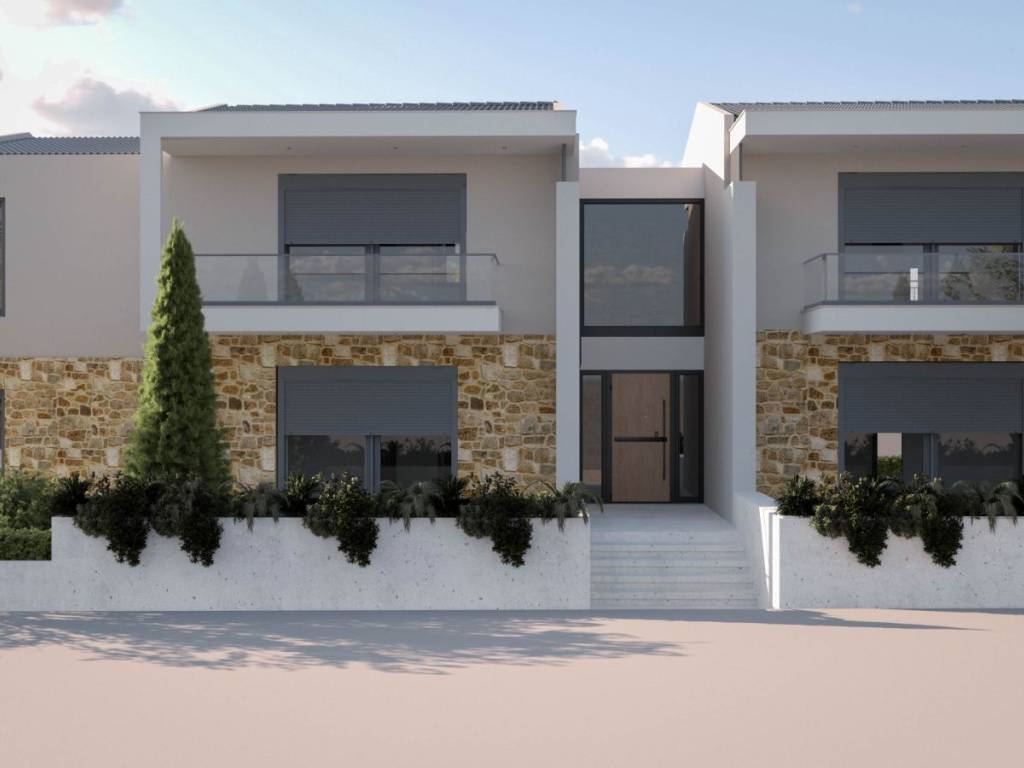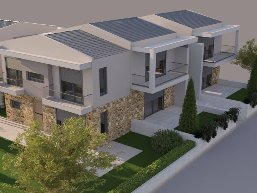 In a complex of luxury country houses under construction. HOLOMON BREEZE villas. 1st floor apartments for sale, 62 meters, 2 rooms, kitchen, living room, wc. And ground floor apartments 62 meters, 2DSKWC, with an exclusive courtyard on the facade, 40 meters. No basement. All privileged, high visibility, with a street facade, open air, northeast orientation, parking inside the complex, modern design. On the beach of Kalyves, inside the settlement. Easy access from asphalt. 200 meters from the coast, easy reachable on foot. All building sites are main, with a height of 2.85 meters. No attics.