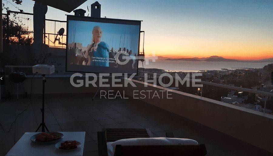 The house for sale locates in the Panorama of Voula with fantastic sea views. This 370 sqm nice house is built on a 359 sqm plot. Entering from the main entrance we meet the living room floor. On this floor we have a fireplace, a fully equipped open kitchen, a dining room, a separate cloakroom, a storage room , a bathroom and a sea view balcony. Going to the upper floor, we will find 3 bedrooms, 1 bathroom, and a large balcony with nice sea view. There is also a beautiful backyard on this floor. This background can be rebuilt into a swimming pool if desired. Then going up to the top floor, we will find a big room with very nice sea view, a kitchen, a storage/laundry room, a bathroom. And there are 2 balconies on this floor. One balcony faces the sea and another one faces the backyard. This floor can be used as an independent apartment or party room etc. On the level below the main living room, there is an independent studio which has a fireplace, living area, an open kitchen, a bathroom. It can also function as a playground or a guesthouse because it has a separate entrance. About the house's energy system, we can use solar, electricity, oil or natural gas. This can be toggled as needed. When we entered the gate of the house, we will see the garage. We have 2 parking spaces and a storage room on this level. Elevator can be added indoors or outdoors