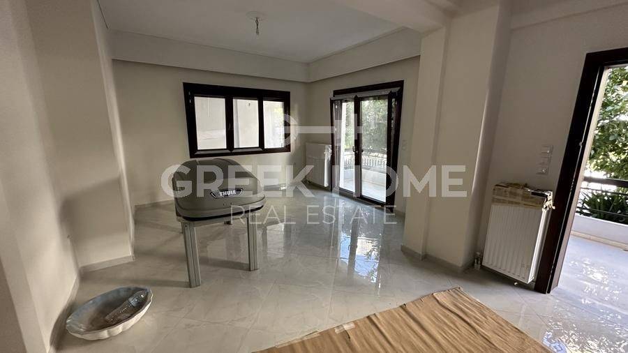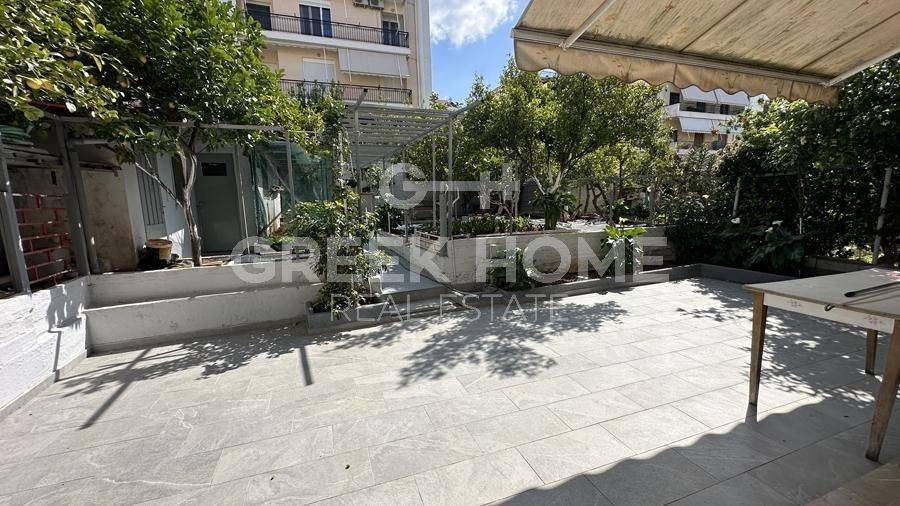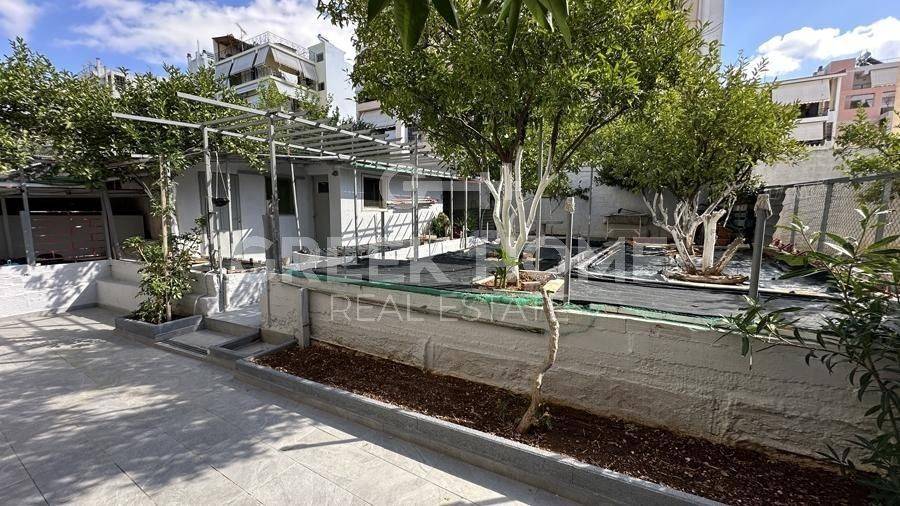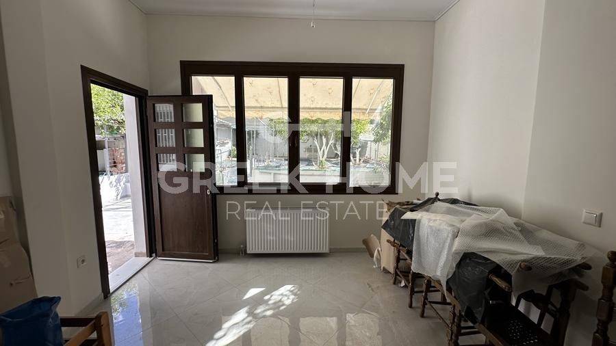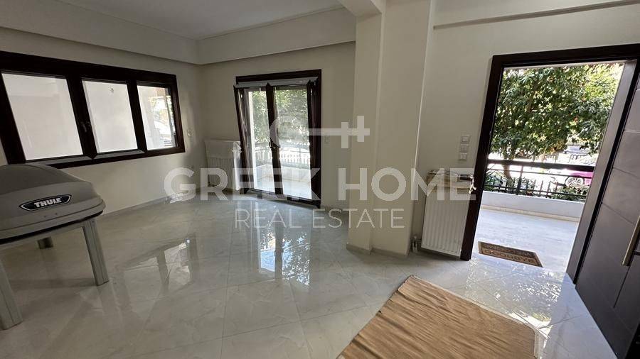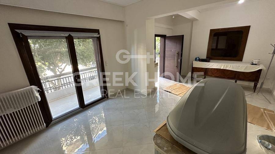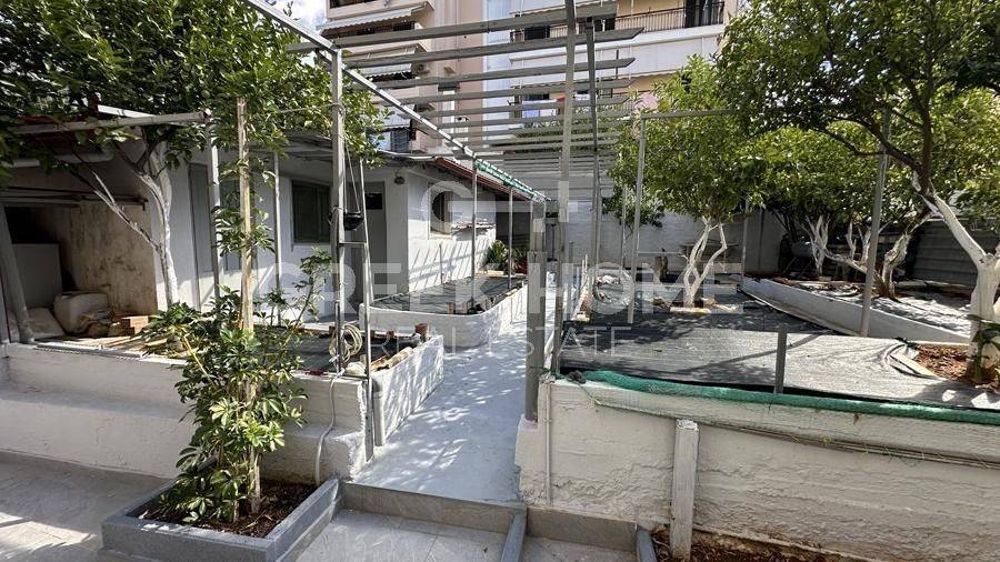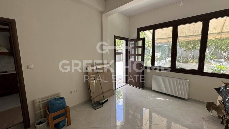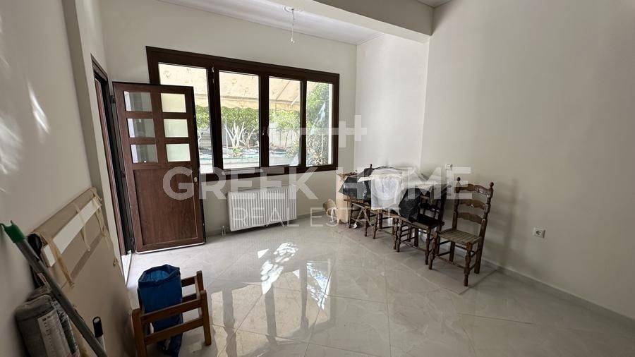 Argyroupoli, Centre - Apartment 90sqm bedrooms 2, raised ground floor, fully renovated, year built 1982, renovation year 2024, energy class B+, living room, kitchen, bathroom, heating type: autonomous (natural gas), parking covered, dual aspect apartment, luminous, frontage, painted, electric roller shutters, storage space 22sqm, solar heater, balconies, large balconies, garden, garden 190sqm, aluminum frames, door screen, ceramic tiles floors, secure door.