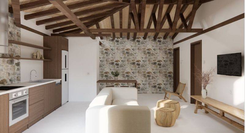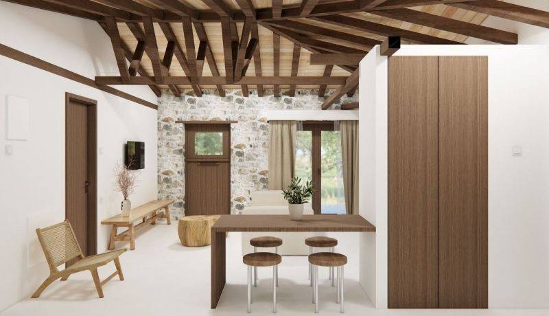 Traditional stone house, located on ground floor in the area of Golden Beach of excellent architecture and high construction level, excellent proposal for investment or owner-occupancy.