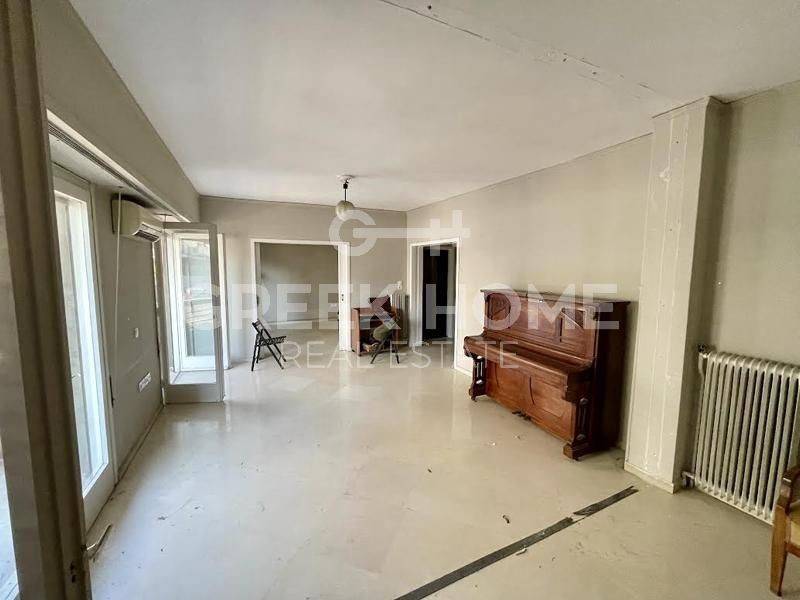 Kypseli, Fokionos Negri - Apartment 106sqm unfurnished, bedrooms 2, 3rd, good condition, year built 1969, energy class G, living room, hall, kitchen, bathroom, wc, heating type: central (natural gas), quiet, luminous, frontage, balconies, tents, elevator, wooden frames, wood & marble floors, separate kitchen, office, east-southern orientation, close to entertainment (up to 5m), close to university/college (up to 1500m), close to square (up to 5m), close to bus stop (up to 100m), close to super market (up to 100m), close to park (up to 1000m), close to sports facilities (up to 1000m), close to sea (up to 100m).