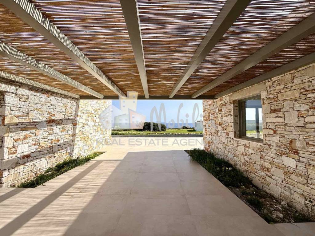 Unique villa of 205 sq.m. on a plot of 4.000 sq.m. with five bedrooms, stunning sea views, in a wonderful location in Glyfa of Paros, on the south coast of the island. The property offers absolute tranquility and privacy, while it stands out for its sophisticated architecture. The residence consists of two independent buildings. The first building houses the spacious living room with open plan kitchen, the master bedroom, the laundry room and a beautiful courtyard where plants can be planted to give a touch of freshness to the house. The second building has four spacious bedrooms, each with its own bathroom, offering additional comfort for guests or family members. Between the two buildings there is a large pergola with a seating area, ideal for relaxing and dining al fresco, with views of the sea. The large swimming pool and extensive outdoor spaces perfectly complement this special property. Mobilia Real Estate, contact phone: 2107563200, 2107563202, email: info@mobilia.gr, website: https://www.mobilia.gr