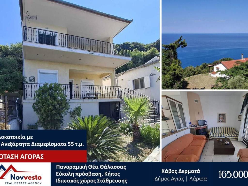 For Sale – Two-Unit House with Panoramic Sea View & Landscaped Garden Kavos Dermatas | Municipality of Agia | Larissa For sale: a two-unit house with a total area of 110 sq.m. (two independent apartments of 55 sq.m. each), situated on a 300 sq.m. plot with a landscaped outdoor space and unobstructed views of the Aegean Sea. Located in Kavos Dermatas, in a prime spot with immediate access to the beaches of Paliouria and Dermatas, just a 2-minute drive away. Ideal both for use by two families or as a tourism investment. Layout & Construction The ground floor apartment, built in 1996, is bright and dual-aspect, featuring two spacious bedrooms, a bathroom, and an open-plan living room with kitchen. It includes a fireplace, large verandas with sea and greenery views, and direct access to the garden. The upper floor, completed just 2 years ago, functions as an independent apartment as well—also bright and dual-aspect—with two bedrooms, a bathroom, and an open-plan kitchen/living area. Its spacious verandas offer panoramic views of the Aegean and the surrounding nature, making it perfect for everyday relaxation or summer living. Outdoor Area & Plot The property includes a landscaped outdoor space, with potential for a garden, outdoor seating, or BBQ area, and a private parking space at the entrance of the plot. The construction is carefully designed with practical and independent layouts on each level—an ideal solution for two families or as a rental property. Location – Kavos Dermatas, Municipality of Agia This area is renowned for its rich natural beauty, where the lush greenery of Mount Kissavos meets the deep blue of the Aegean. Nearby, you’ll find crystal-clear beaches with easy access, while the location offers a peaceful and secluded atmosphere without sacrificing convenience. Useful Distances Health Center (Sotiritsa): 9.1 km Pharmacy: 9 km Larissa: 59 km Thessaloniki Airport (SKG): 171 km ℹ️ For more information, feel free to contact us. We’ll be happy to assist you! Novvesto Real Estate – Odysseas Grammenos odg@novvesto.gr The Coastal Zone of Agia – A Hidden Gem Just 150 km from Thessaloniki Only 150 kilometers from Macedonia Airport (SKG), the coastal area of the Municipality of Agia remains an undiscovered gem for many. Here, where the green slopes of Kissavos meet the crystal-clear waters of the Aegean, stretches a unique 45-kilometer coastline with 26 beaches—from Mylos Glymeni to the Pineios Delta. Small coves and large sandy shores—whether organized or pristine—await each summer to reveal their hidden beauty. The region perfectly combines the lush greenery of its semi-mountainous terrain with the turquoise waters of the Aegean in a landscape that remains untouched by overdevelopment. Hiking trails, wreck diving, canoeing in the Pineios Delta, canyoning in the Kalypso Gorge, and zodiac cave explorations promise a multi-dimensional holiday experience for those seeking something beyond the ordinary. The area is also home to monasteries, archaeological sites, and historic landmarks like the Monastery of Saint John the Theologian, the Saints Anargyroi, the Castle of Velika, and the archaeological site of Kato Polydendri—pieces of a blessed land that has preserved its identity.