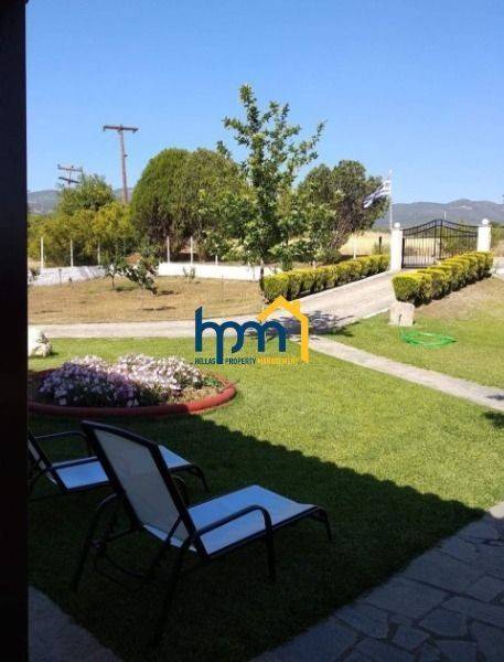 Thessaloniki Suburbs Vasilika for sale , Surface 220.0 sq.m, Ground floor Detached House Vacation house Neoclassical Traditional House Luxury , built in 1992 , New development,consists of 2 living rooms, 5 bedrooms, 2 kitchens, 2 toilets, 5 parking, ( Independent Ground Floor,Indoor Storage,Single space kitchen living room ). The heating system is individual - Petrol , A/C, solar boiler and fireplace.It also has storage space, secure door, CCTV,balconies, no shared costs, is corner, BBQ, Playroom,Boiler, Internet, Awning, pets allowed, Lawn, Auto / Watering,trees, garden. Located near to Main street,Urban attitude. ,sea at 11000 m , airport at 10000 m Price (230.000€) Property Code 1041-36 Hellas Property Management Μητροπολίτου Γρηγορίου Κυδωνιών 6,