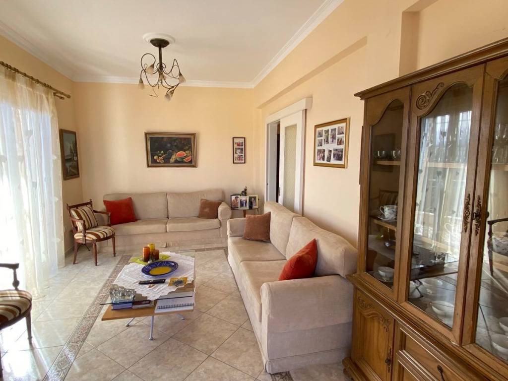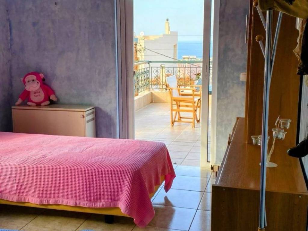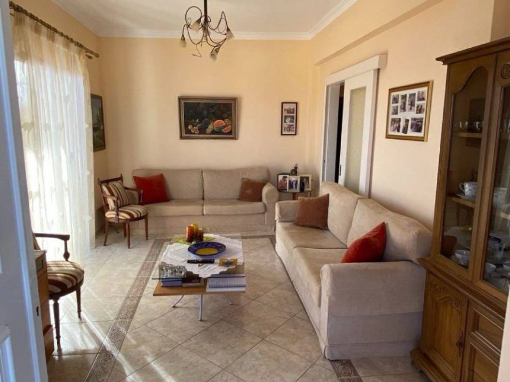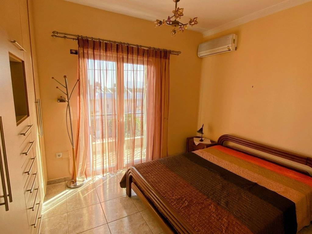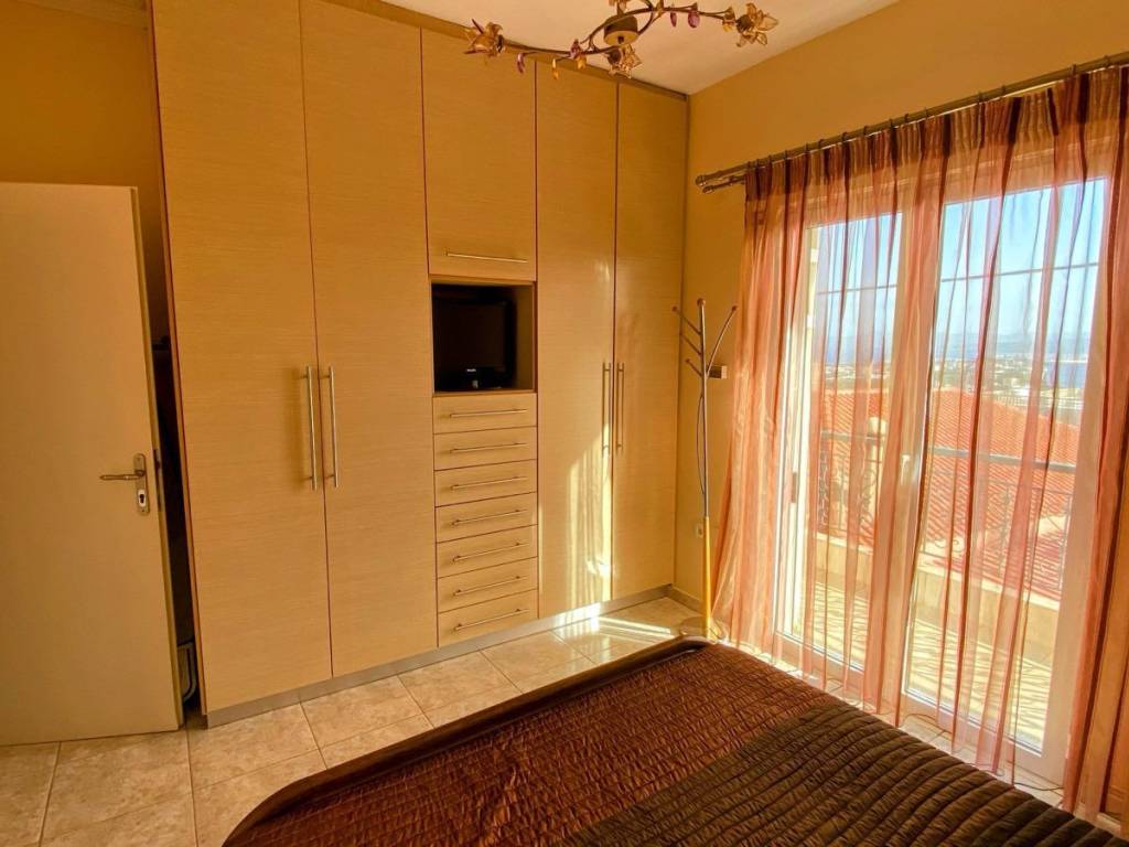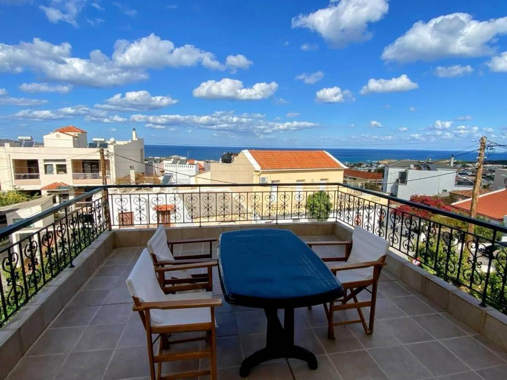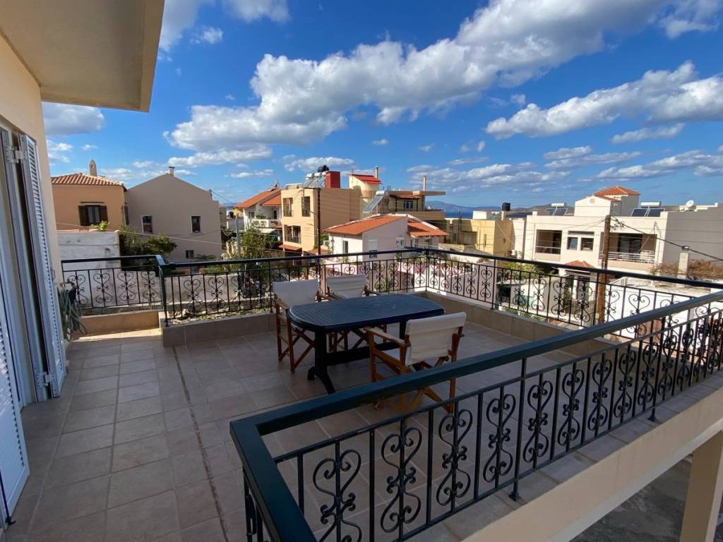 1st floor apartment, in Galatas, Kydonia Prefecture, 91 sq m. Renovated in 2010, aluminum frames, screens, solar water heater, air conditioners in all rooms. Available furnished. Large terrace with unlimited sea view. Very close to the village square, market, school, bus stop. The point on the map depicts the area of the property and not its exact location