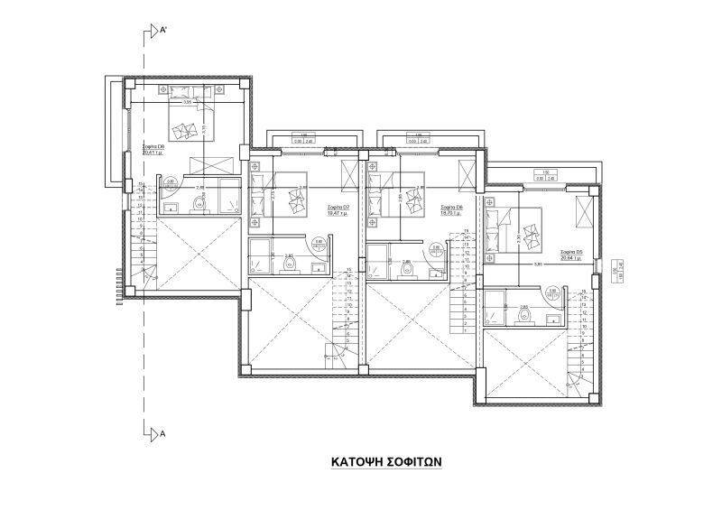 • 4 Διαμερίσματα ορόφου με σοφίτα από 54,35τ.μ. έως 57,65τ.μ, που αποτελούνται από σαλοκουζίνα, 2 υπνοδωμάτια, 2 μπάνια.