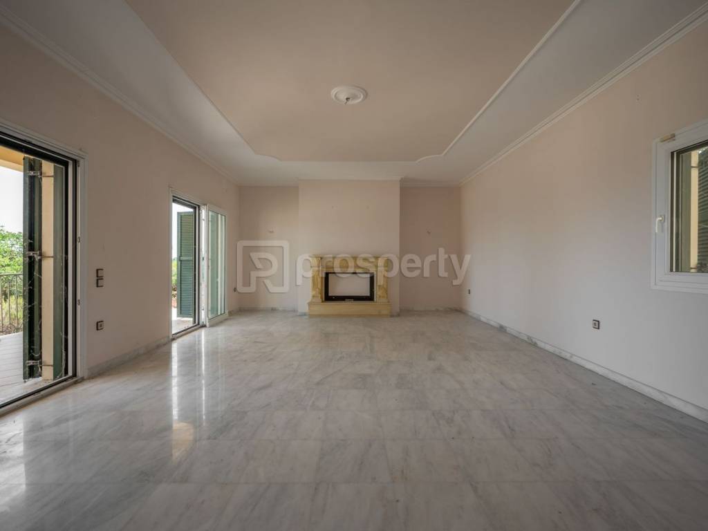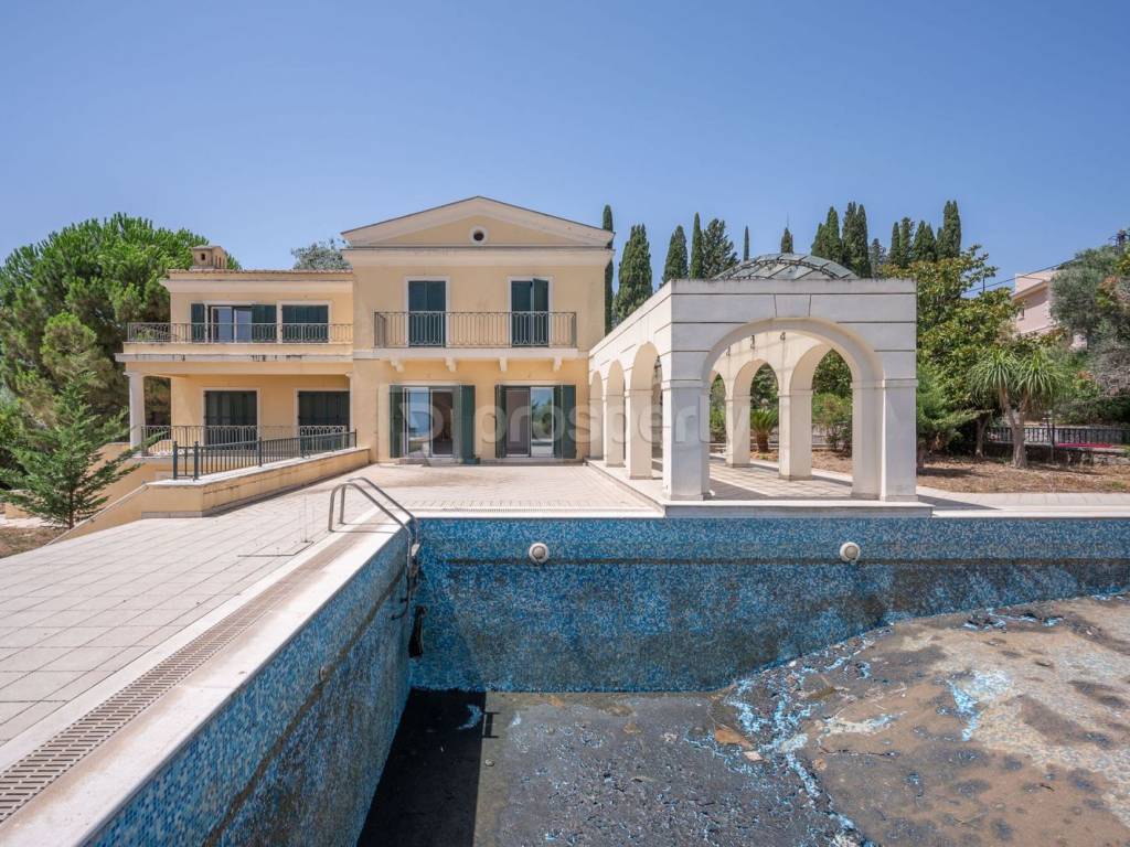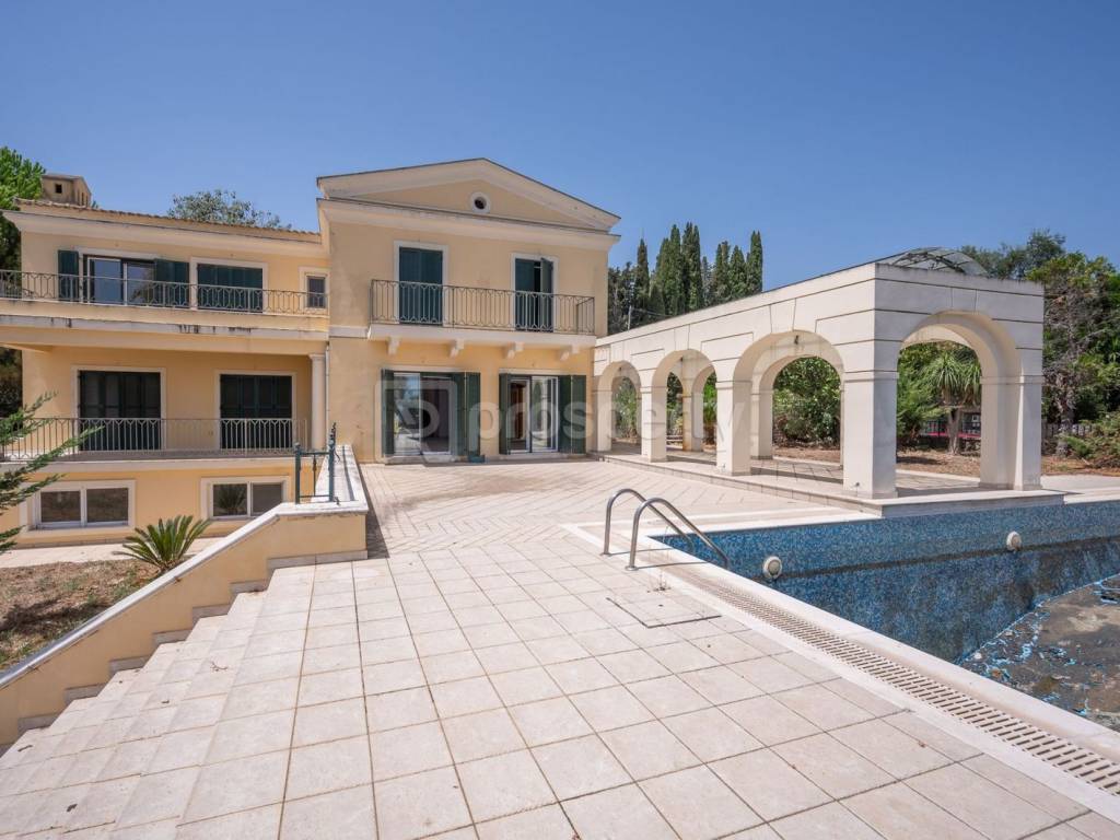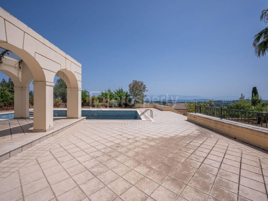 Set on a gentle hillside with panoramic views of the Kontokali marina and the endless blue of the Ionian Sea, this villa of exceptional design and construction, totaling 406 sq.m., is offered for sale on a privately owned plot of 4,860 sq.m. The property stands out for its prime location, architectural integrity, and refined sense of luxury, making it a rare opportunity for either private living or high-end investment. The residence is spread across three levels, connected by both an elegant internal staircase and a private elevator, ensuring complete autonomy and comfort of movement throughout. The lower level, measuring 189 sq.m., includes two bedrooms, a bathroom with jacuzzi, generous storage areas, and a large open space that can be used as a playroom or relaxation area. Additionally, there is a designated area that formerly served as a fully equipped kitchen, offering flexibility for guest accommodation, staff quarters, or even an independent living unit. This level also includes closed indoor parking spaces, offering practical protection for vehicles and additional utility. The ground floor of 121 sq.m. serves as the main living area and features a bright, spacious living room with a fireplace, a dining area, and a thoughtfully designed space where a kitchen previously existed—ready to be reinstalled according to the new owner's preferences. This floor also includes a guest WC and offers direct access to large verandas and the pool terrace, all enjoying unobstructed views of the sea and surrounding nature. The first floor accommodates three bedrooms, including a master suite with en-suite bathroom and a generous walk-in wardrobe. The two additional bedrooms share a well-appointed bathroom, while an extra room offers the flexibility to be used as a home office or storage space, depending on the owner's needs. The outdoor areas are beautifully landscaped, featuring a large private swimming pool, multiple lounging and sitting areas, stone-paved walkways, and mature greenery that blends harmoniously with the natural surroundings. The property offers complete privacy while being ideally located with easy access to the nearby marina, beaches, and Corfu Town. This is a property of outstanding architectural and construction quality, combining comfort with elegance, privacy with accessibility, and natural beauty with discreet luxury. It presents a rare opportunity for residential living or investment in the heart of the Ionian. https://marketplace.theprosperty.com/listings/13286 ☎️ 210 6812500