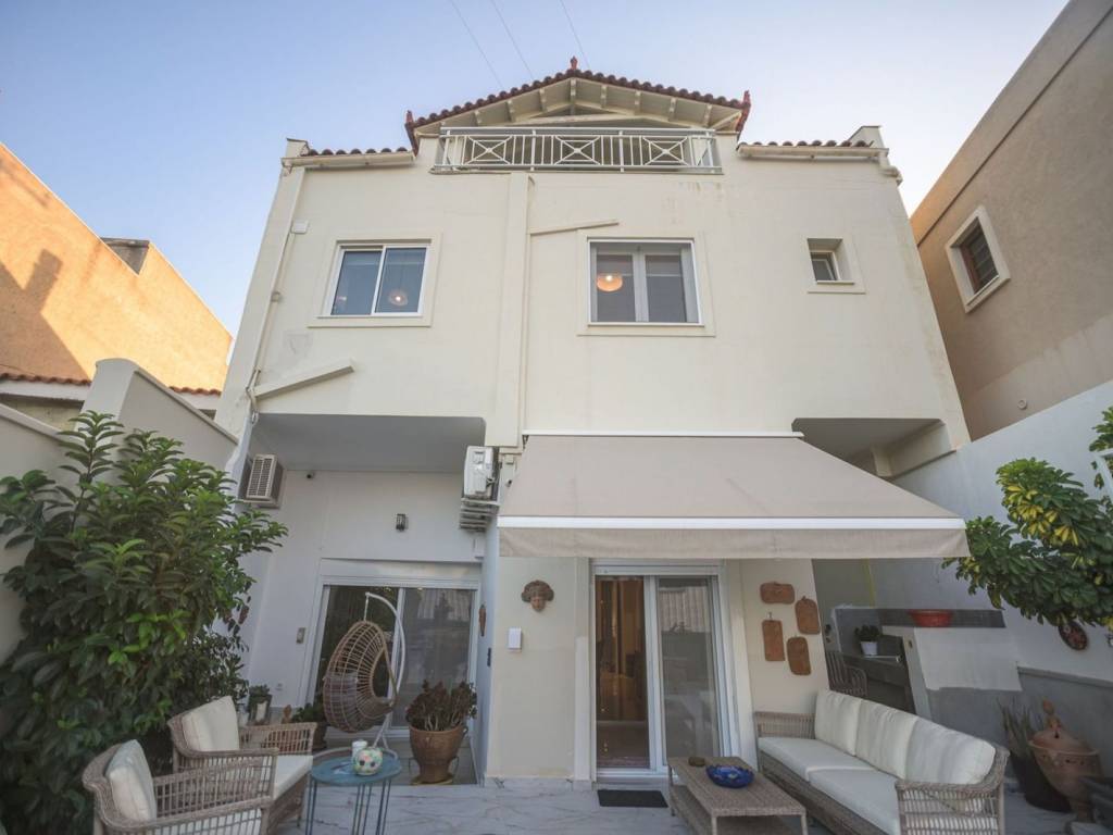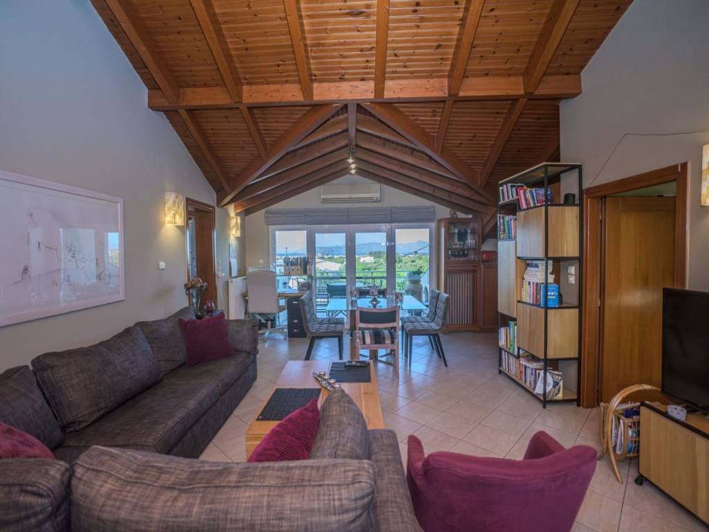 In the heart of Velo, Corinthia, just 1.5 kilometers from the sea and 6 kilometers from the suburban railway station, a three-level family building with a total area of 304 sq.m., built in 1980, is available for sale. The property consists of three independent, through-floor apartments – ground floor, first, and second floor – which can be sold as a whole. The entrance of the building and the common areas are clad with granite marble, adding elegance and timeless aesthetics. The ground floor apartment, with an area of 88 sq.m., was fully renovated in 2023 and combines unique aesthetics with modern comfort. It features a bright living room with a fireplace and Kavala marble flooring, while the separate kitchen is equipped with built-in electrical appliances. The dining area, with a large built-in wardrobe and ample storage spaces, can be configured as a second bedroom. The apartment includes two modern bathrooms with showers, an office space with access to the private external garden, and is offered with a closed garage for one car and an additional exterior parking space. The atmosphere of the house is bright and welcoming throughout the day, and it has an air conditioning system for cooling and heating. The first floor, with an area of 139 sq.m., is a comfortable and warm residence with wooden parquet floors. At the entrance, there is a bright foyer with a library, leading into the spacious living room, dining room, and sitting area. The kitchen, in a separate space, features built-in electrical appliances and is connected to a utility laundry and storage area. The apartment includes three large bedrooms with built-in wardrobes, one of which is designed as an office, a modern bathroom, and a separate guest WC. All spaces are bathed in natural light, offering a sense of coziness, and are equipped with cooling-heating air conditioners. The penthouse apartment on the second floor has an area of 77 sq.m. and stands out for its panoramic view of the city center. With a wooden roof and two spacious terraces, the home offers unique warmth and privacy. The living room and kitchen are in a bright open space, followed by a large bedroom and a smaller one that can also serve as an office. The modern bathroom, wooden details, and abundant natural light make the apartment particularly welcoming. The penthouse also has cooling-heating air conditioners. Overall, the property is ideal for a large family, cohabitation, or even tourist/long-term exploitation. It is located in a quiet and convenient location, close to schools, markets, and all necessary services, offering comfort, quality of life, and immediate access to urban centers via the suburban railway. The prefecture of Corinthia is located in the northeastern Peloponnese. Unique Features: The prefecture has a variety of destinations ideal for summer and winter getaways. Corinthia is characterized for its rich diversity as it perfectly combines mountain, nature and sea escapes while it has a rich history and culture. A trademark of the prefecture of Corinth is the Corinth Canal, an impressive project that is navigated every year by more than 15,000 ships. Important cities of the prefecture are Corinth, Loutraki, Xylokastro, Agii Theodoroi and Kiato. Accessibility: Access to Corinthia is easy and can be done by car through the existing road network, and is only 84 km away from Athens and 132 km from Patras. Furthermore, long-distance buses provide regular services to most areas of the prefecture and there is a railway connection between the prefecture of Corinthia and Athens. Investment Opportunity: Greece is one of the most popular holiday destinations in the world, with the prefecture of Corinthia being in particularly high demand and becoming an increasingly attractive destination for investors in winter and summer.