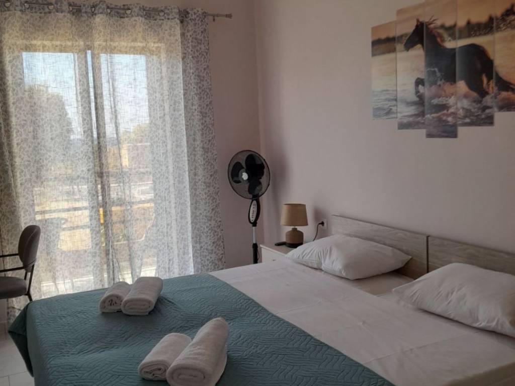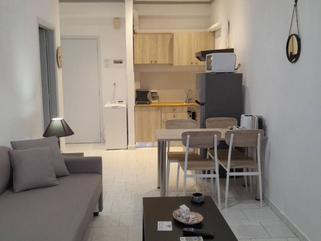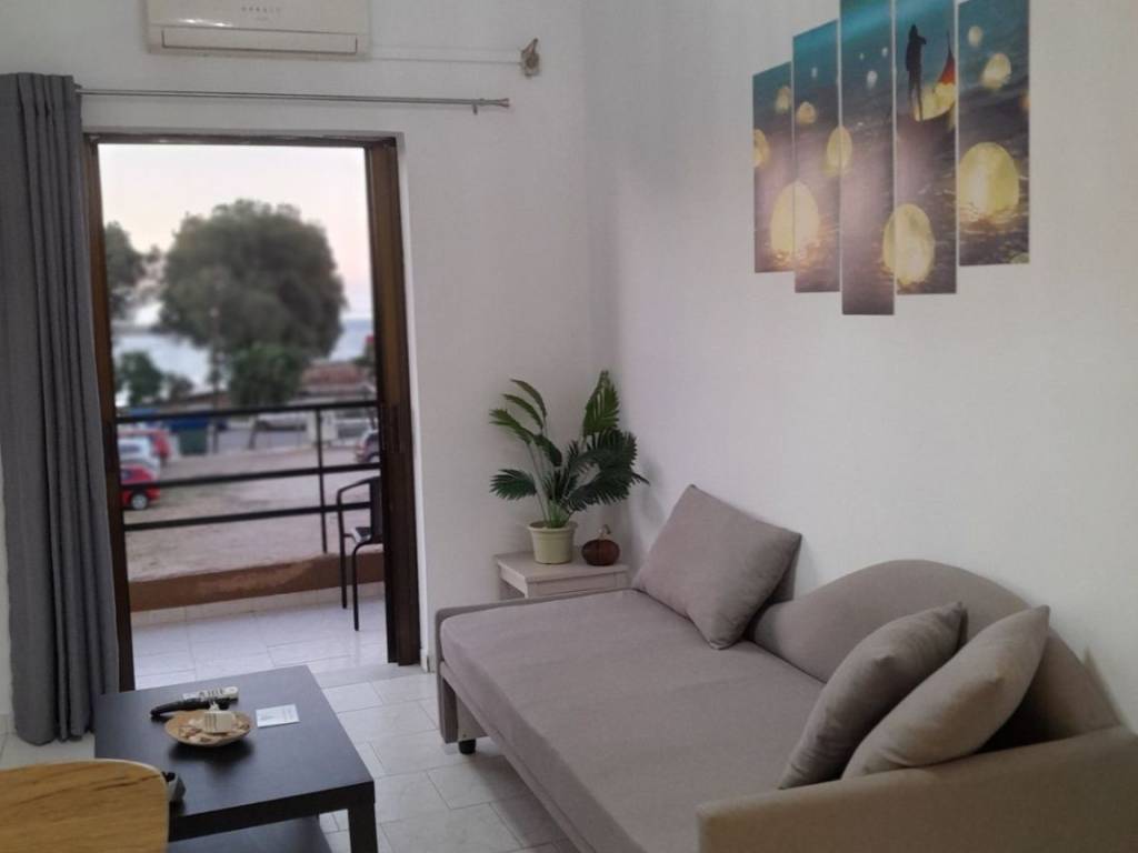 Apartment for rent €500/month (electricity and water included in the price) until 10/6/2026 with free wifi, 40 sq.m, 1st floor, in front of the sea. It consists of a single kitchen-living area with a sofa that becomes a bed, 1 bedroom with 2 single beds that become a king-size bed and a bathroom with a shower. It has 1 air-conditioner. Complete household equipment, washing machine, kitchenette, refrigerator, TV. 1 minute from the bus stop for bus No 11 and 5 minutes from the departure area (Kladissos) of the free municipal bus to the city centre. No pets. Available until 10/6/2026. Tel. 6939131325