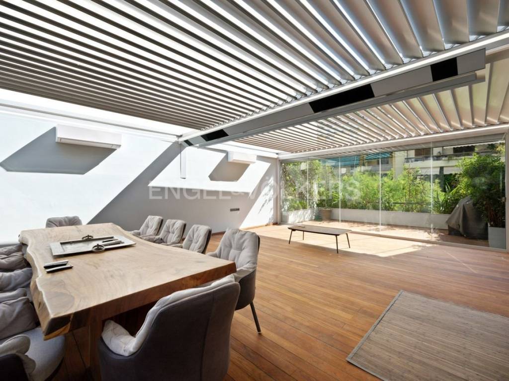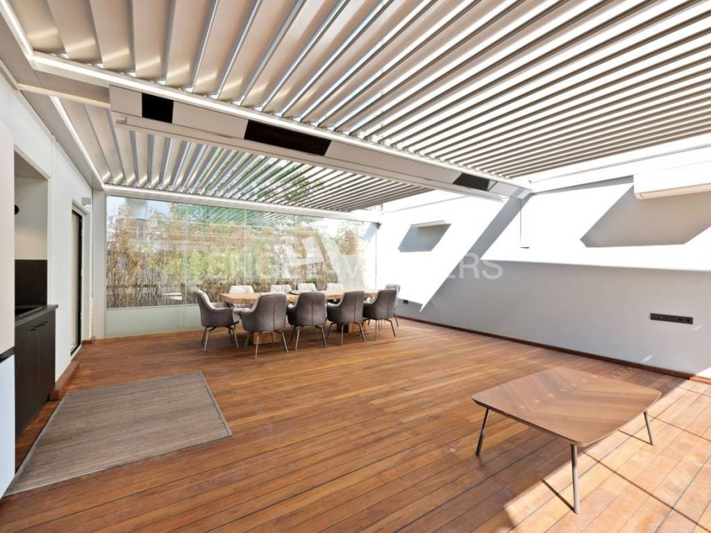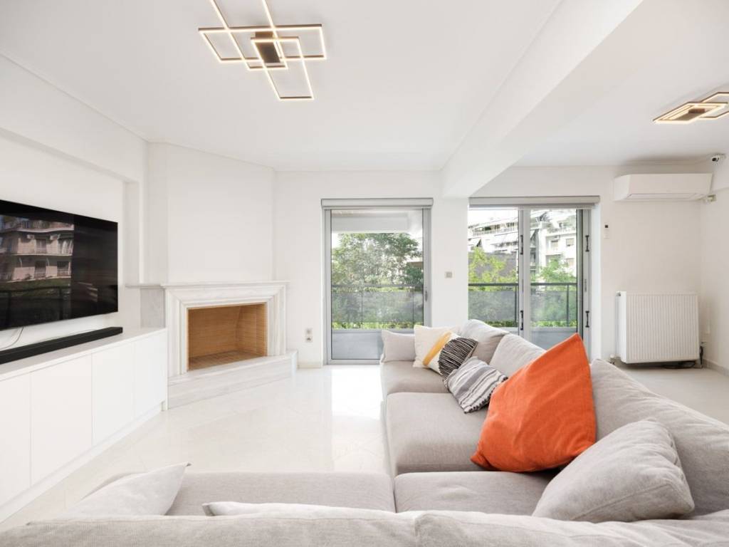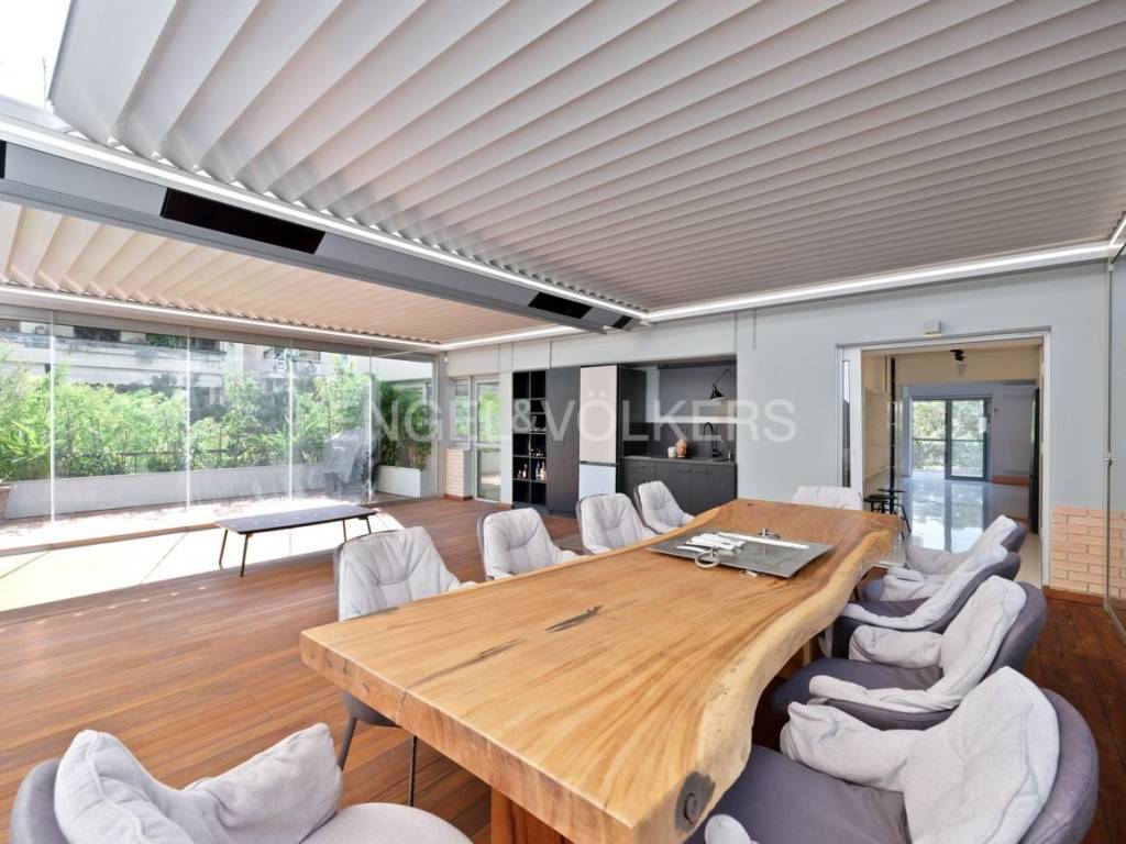 125 sq.m. apartment with a 50 sq.m. independent patio with entrance from the kitchen and from the second bathroom. The patio has its own kitchen, refrigerator, and BBQ on the balcony. It is a unique space for winter and summer as it has a heating system on the roof and cooling with 2 a/c units. The special Burma wood flooring and the natural wood dining table make it unique and give it a Zen aesthetic. It consists of 3 bedrooms, 1 bathroom, 1 wc, DAIKIN air conditioning in all rooms, and independent natural gas. The kitchen is modern and white with all electrical appliances, Miele stove, Neff extractor fan, Miele refrigerator and dishwasher, wine cellar, and storage space. It also has a washing machine and dryer. The spacious living room connects to the kitchen, has a fireplace, and opens onto a large balcony with an unobstructed view. It has 1 underground parking space. Ideal for living in luxury in a unique space that is second to none in Athens. Explore a space where wooden and marble flooring adds a warm and elegant feel, while built-in wardrobes and a modern kitchen provide practicality and style. The fireplace exudes coziness, creating an atmosphere ideal for relaxation and enjoyable moments with friends and family. The apartment additionally features a private balcony, where you can enjoy the view of the urban landscape, while security is enhanced with an alarm system and a security door. The private underground parking space and special gas heating ensure comfort and convenience. Discover the ultimate luxury and comfort in this elegant residence, which invites you to become part of its history. This is a once-in-a-lifetime opportunity that promises to enchant you with its harmony and refined charm. In one of the most elegant neighborhoods of Athens, offers a combination of luxury and cultural vibrancy, ideal for sophisticated enthusiasts of good taste and history. This area attracts those seeking the metropolis feel with a touch of aristocracy. Residents have at their disposal an excellent network of infrastructure, with access to premium shopping stores, gourmet restaurants, and luxury hotels, while the central location offers immediate access to historical sites. For art and culture lovers, the museums and galleries of the area promise unforgettable moments. The walking paths in the lush gardens of the National Garden or the archaeological sites offer absolute relaxation. Additionally, you can enjoy the magic of the Parthenon, which is just a 10-minute drive away. The area is renowned for its idyllic walks among tasteful buildings and marble squares, while its residences exude prestige and charm. Here, life acquires a quality that blends the present with the past in unparalleled harmony, inviting you to become part of a unique chapter of life in the heart of Athens.