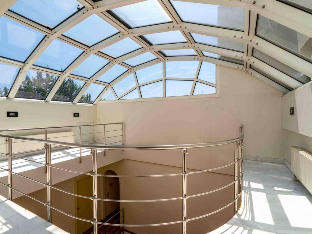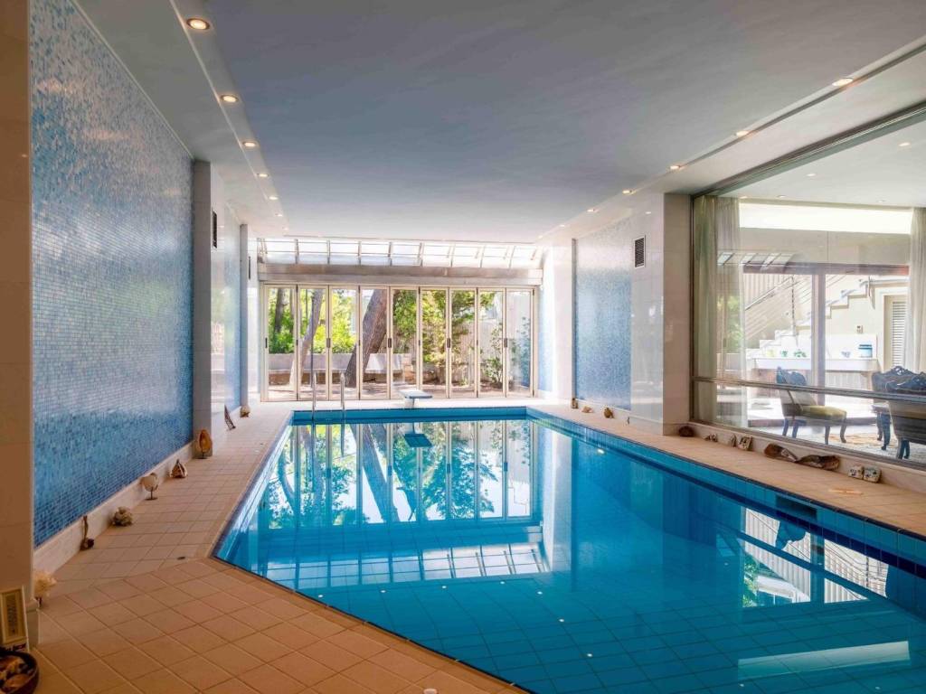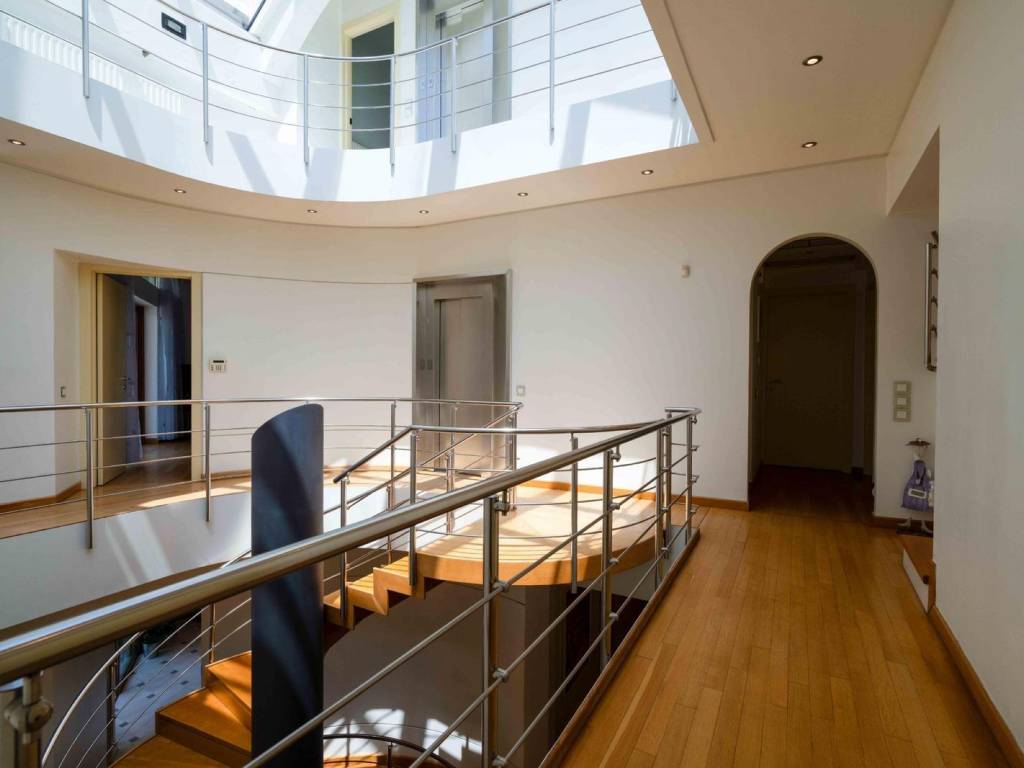 A luxurious with a total living area 1.200 sq.m. property located in the heart of Kefalari (Kifisia), on an 880 sq.m. plot, built in 2000, featuring excellent orientation and unobstructed sea views. The residence is designed with high aesthetics and constructed using top-quality materials, offering ideal spaces for living and entertaining. The mansion spans five levels , including all auxiliary spaces, basements, rooftop, and semi-outdoor areas. The ground floor, with a surface of 245 sq.m., hosts the main entrance area, a spacious living room with fireplace, dining room, fully equipped kitchen plus an additional service kitchen, office space, guest room with bathroom, guest WC, and cloakroom. On the first floor (200 sq.m.), there is a master bedroom with walk-in closet, bathtub, jacuzzi, and shower, along with 3 additional master bedrooms. There is also an independent space ready for kitchen installation, allowing for extra privacy. The rooftop (65 sq.m.) is an open-plan space that can function as a sitting area, office, or bedroom, with its own bathroom and storage room. The first basement (390 sq.m.) features a heated indoor pool with its own sitting area and direct access to the garden, as well as a playroom with fireplace and BBQ. This level also includes a gym, laundry room, staff quarters, guest WC, and multiple storage areas. The second basement (300 sq.m.) includes 5 parking spaces, a car wash area, and additional storage space. The mansion, is surrounded by a lush garden with landscaped outdoor living areas, BBQ, and direct connection to the playroom and pool. It features a skylight that illuminates the interior atrium, an elevator, and a circular staircase connecting all levels. The property can be configured as two independent residences, with separate entrances, staircases, and elevators. Construction is ultra-luxurious, with underfloor heating throughout, central air conditioning with ceiling duct system, central solar system, external stairs with anti-icing system, Italian thermal break window frames, security shutters, security doors, double insulated walls, and flooring made of Dionysos marble and wood. All appliances and sanitary ware are from premium brands. This is a truly unique property with rare features, ideal for a family or a combination of residential and professional use, located in one of the most prestigious areas of Attica. Kefalari area is set in one of the greenest and quiet areas of Kifisia with magnificent residences around, considered to be one of the most prestigious district of Kifisia, a quiet, green oasis and commercial hub, only 12kms away from the city centre. It is a top class neighborhood which forms a unique value by itself. In proximity to Kifisia center with its premium shopping area, as well as to Kefalari square, with its unique entertainment options. This is the perfect location to reside with a high standard of living and safety. Unique features: Kefalari, home to wealthy Athenian families in the post-War period has retained its genteel, old world charms and remains one of the most sought-after addresses. A refreshingly green area with several parks, large public squares, an upscale open-air shopping district with haute couture brands and international labels, banks, refined restaurants, trendy bars, sports clubs and fitness centres. It is close to most international schools and attracts a lot of foreign residents. Its cosmopolitan nature reflects in the speciality supermarkets and food stores that abound. Two of Greece’s largest malls are just a 5-minute drive away. Accessibility: Kefalari is easily accessible by a regular train and bus service to the centre of Athens. Investment potential: Kefalari has always been attractive to real estate investors so property prices here will always offer a good return on investment.