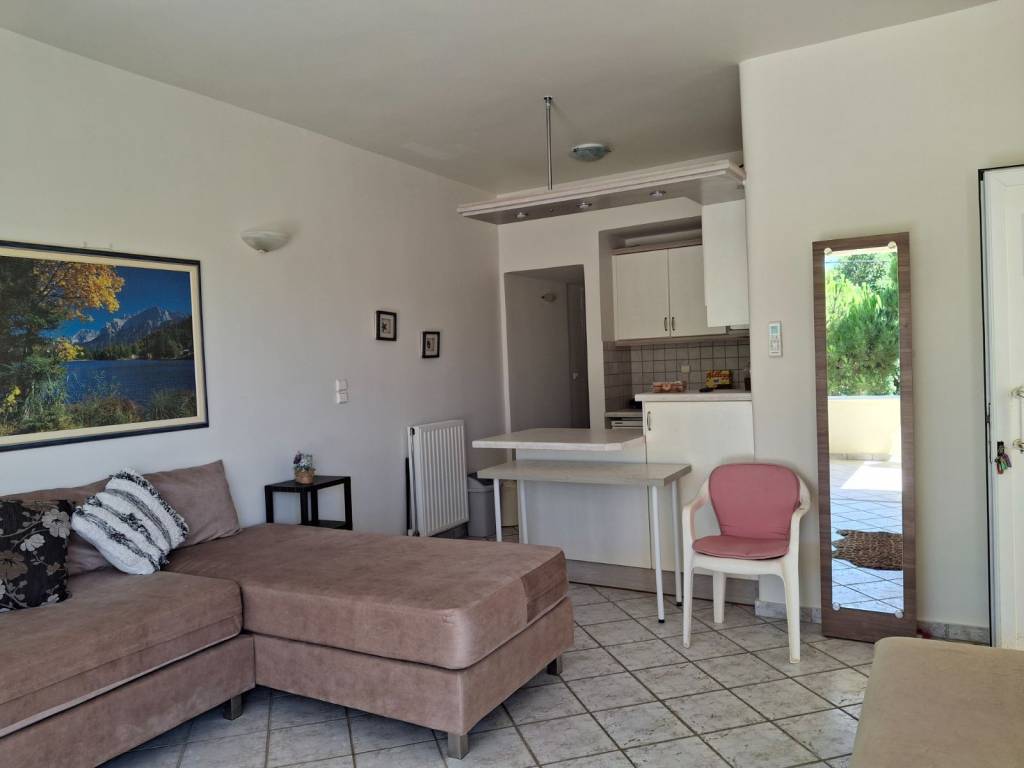 FOR RENT in CHRISI AKTI, Chania, a furnished studio apartment of 32 sq.m., from 20/1/2026 to 30/6/2026, of excellent construction, with a sea and greenery view. It features a single open space for sleeping-living-kitchen area, a bright bathroom, and a large covered veranda facing the sea. It is fully furnished and equipped with electrical appliances, has solar water heating and internet, and is completely ready for occupancy. It also features autonomous central heating and air conditioning, while the price is negociable and includes communal, water and internet expenses. Directly in front, there is a small public parking lot, and the area is served by city buses to and from the city, with a stop very close by. In the neighborhood, there are large supermarkets, as well as pastry shops, pharmacies, medical clinics, a bookstore, mini-markets, and many tavernas. The Chrisi Akti beach is famous for its sandy shore, and the nearby area with the Agioi Apostoloi pine forest is ideal for nature-related exercise. The apartment must be vacated by June 30, 2026.
