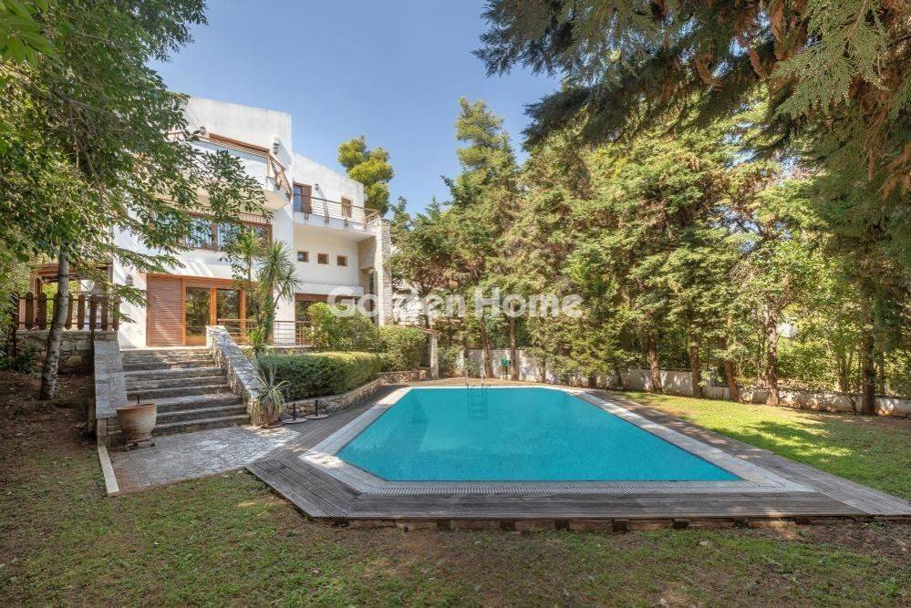 Discreetly Luxurious Villa for Sale in Green Dionysos | 738m2 on 800 sq.m. Plot | Elevator on All Levels Located on a quiet street in the lush suburb of Dionysos, this elegantly designed villa of 738m2, set on an 800 m2 plot, is available for sale. Equipped with an elevator on all levels, this residence is ideal for families, professionals, or use as a diplomatic residence. The property is surrounded by a beautifully landscaped garden, featuring a large swimming pool and BBQ area – offering comfort, privacy, and a high standard of living. In a quiet street, in the lush green area of Dionysos, two fully independent residences 400 sq.m. and 132 sq.m. of discreet luxury are offered for sale, set on 800 sq.m. plot. The property features an elevator serving all levels, and is ideal for a large family or for use as a diplomatic/ambassadorial residence. The house is surrounded by a beautifully landscaped garden, featuring a large swimming pool and BBQ area, offering privacy and an excellent quality of life. Residence 400 sq.m. Basement: Configured as an independent unit with a separate entrance, comprising a spacious bathroom, an open-plan area with a marble fireplace, bedroom, kitchen, and storage room. Ground floor: An impressive open-plan living area with a marble fireplace, oak wooden floors, large openings and skylights that flood the space with natural light. A spacious kitchen with fireplace, marble guest WC, and an additional room with independent entrance, suitable for an office or bedroom. Mezzanine level: Open and bright space, ideal for a sitting area, library, or office. 1st floor: Master bedroom with marble bathroom featuring a jacuzzi and a walk-in wardrobe, two additional bedrooms, a large bathroom with natural light, and multiple built-in wardrobes in the hallway. Residence 132 sq.m. With a separate entrance, ideal for guest accommodation or independent living. 1st floor: Living room with fireplace, kitchen, and WC. 2nd floor: Three bedrooms, one bathroom, and additional storage/wardrobes in the hallway. For Sale, detached, Full Bathrooms: 4, Half Bathrooms: 2, Living Area: 738 Sqm, Rooms: 8, Year Built: 2006, Holiday Home, Air Conditioning, Swimming Pool, View, Balcony, Elevator, Fireplace, Garden, Internal Stairs, Playroom, Secure Door, Solar Water Heating, Alarm, Storage Space, Garage, Floor Number: Ground Floor, Facade, Pets Allowed, Satellite Receiver, Attic, Airy, Bright, Kitchens: 3, Joinery: Wooden, Floor Type: Marble, Lot Size: 800 Sqm, Levels: 5, Heating Controller: Autonomous, Heating Medium: Petrol, Road Type: Asphalt, Zoning: Residential, Neoclassic, Energy Class: C, Orientation: E, Current: Three Phase, Distance Sea: 10000