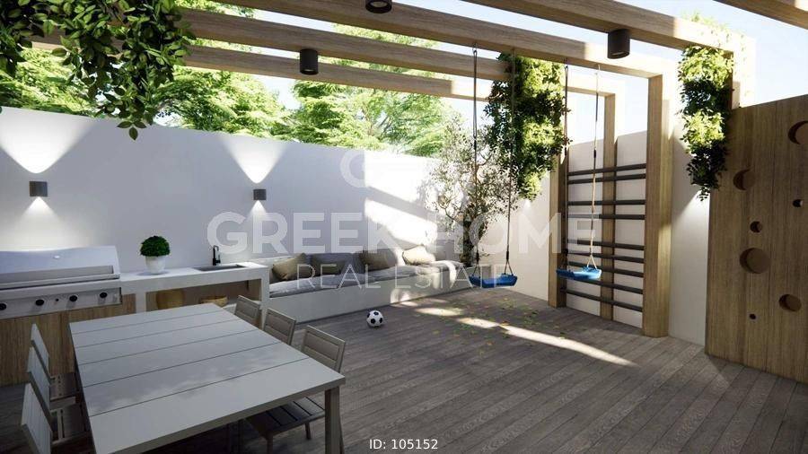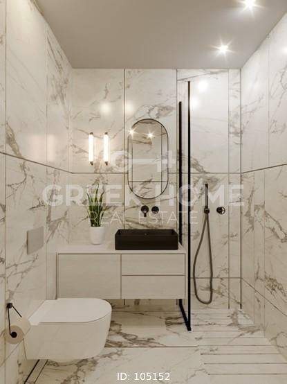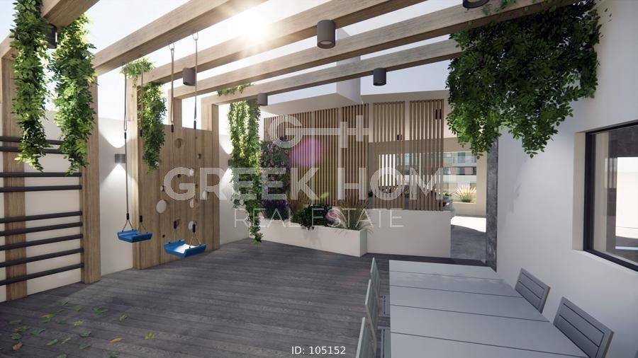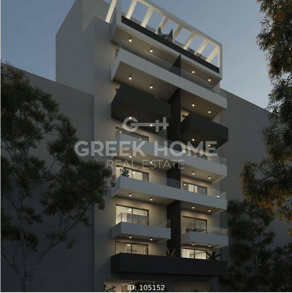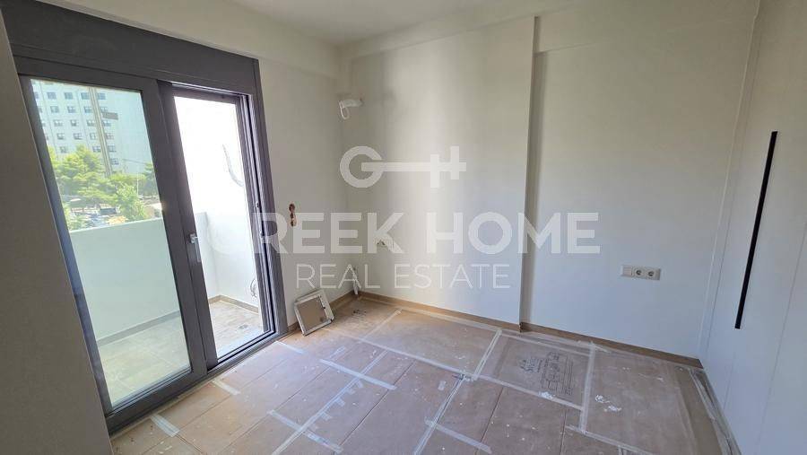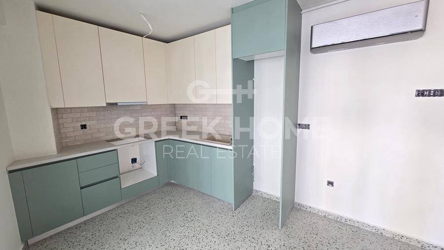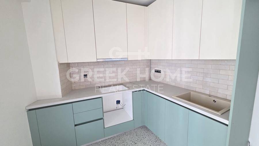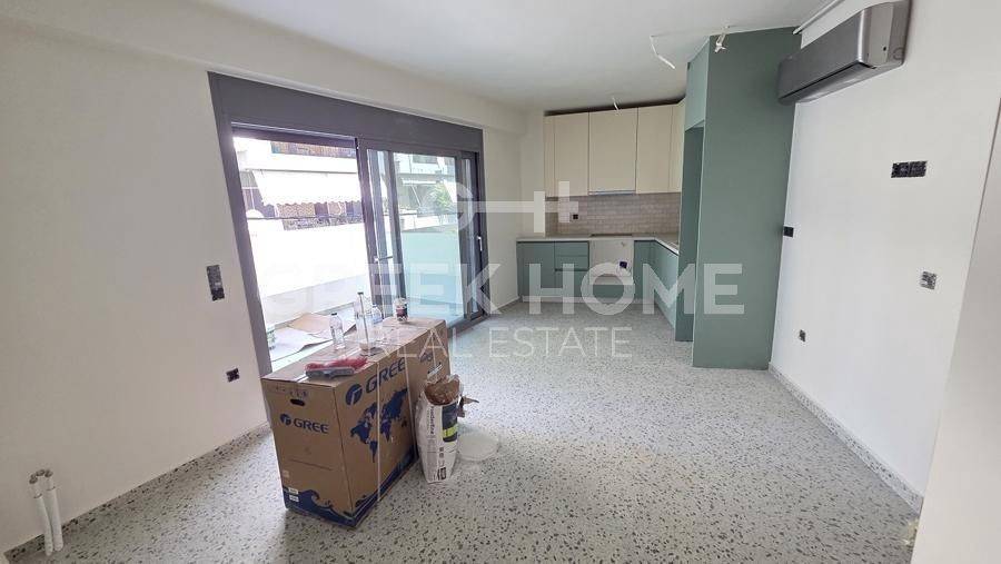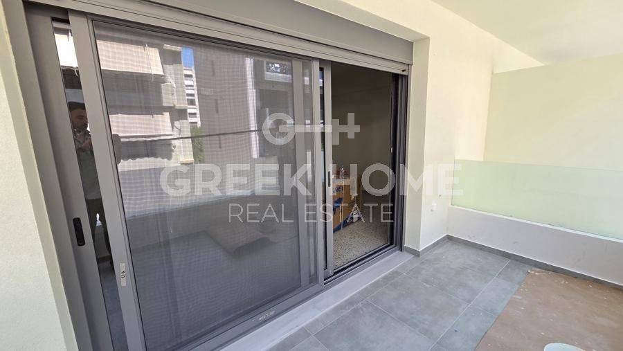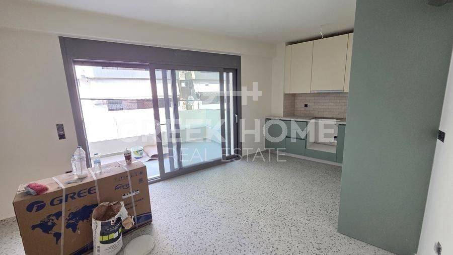 Kallithea (Attica - Southern Suburbs), Tzitzifies - Apartment 47sqm electrical appliances furnished, bedroom, 3rd, under construction, year built 2023, energy class A+, living room, hall, kitchen, bathroom, heating type: individual unit (natural gas), air condition, dual aspect apartment, luminous, unobstructed view, electric roller shutters, solar heater, boiler, external thermal insulation, balconies, large balconies, balcony 14sqm, elevator, garden, thermal shut-off frames, double glazed windows, door screen, marble floors, handicap ramp, secure door, alarm, video doorbell, luxurious, satellite, internet, close to park (up to 1000m).
