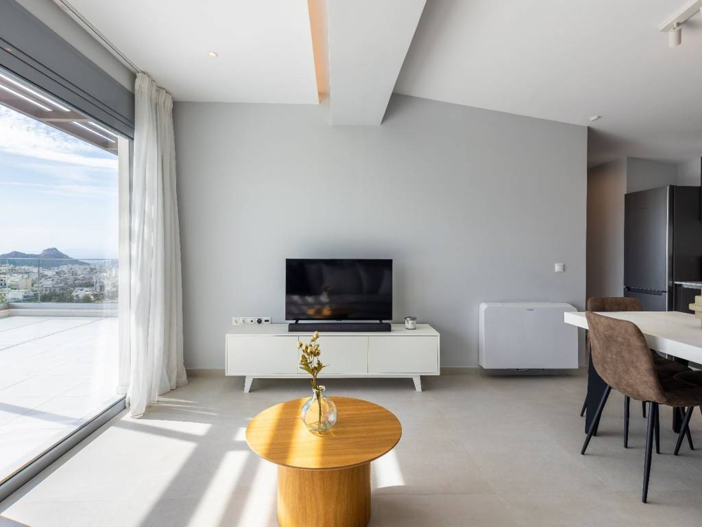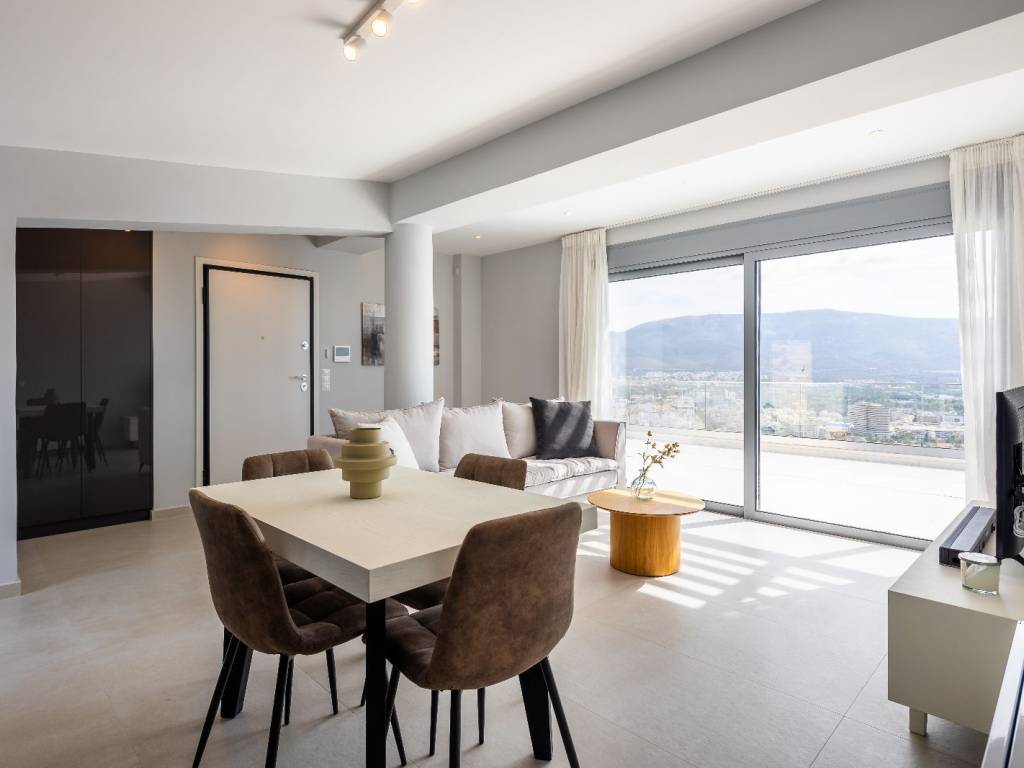 Stunning Apartment with Expansive Balcony Offering Panoramic Sea & City Views – Psychico, Athens Nestled in the prestigious neighborhood of Psychico, this elegant top floor apartment combines urban sophistication with breathtaking natural beauty. The highlight of this residence is its expansive 55 sqm balcony, offering uninterrupted panoramic views of the Athenian skyline, the shimmering Saronic Gulf, and the iconic landmarks of the city. Thoughtfully designed, the interior features spacious living and dining areas flooded with natural light, complemented by high-quality finishes and a seamless flow to the outdoor space. The apartment offers ample comfort with well-proportioned bedroom, a modern kitchen, and refined bathroom, all crafted for both style and functionality. Located in one of Athens’ most sought-after areas, this property provides a perfect blend of tranquility and accessibility, ideal for discerning buyers seeking a luxurious lifestyle with a view.