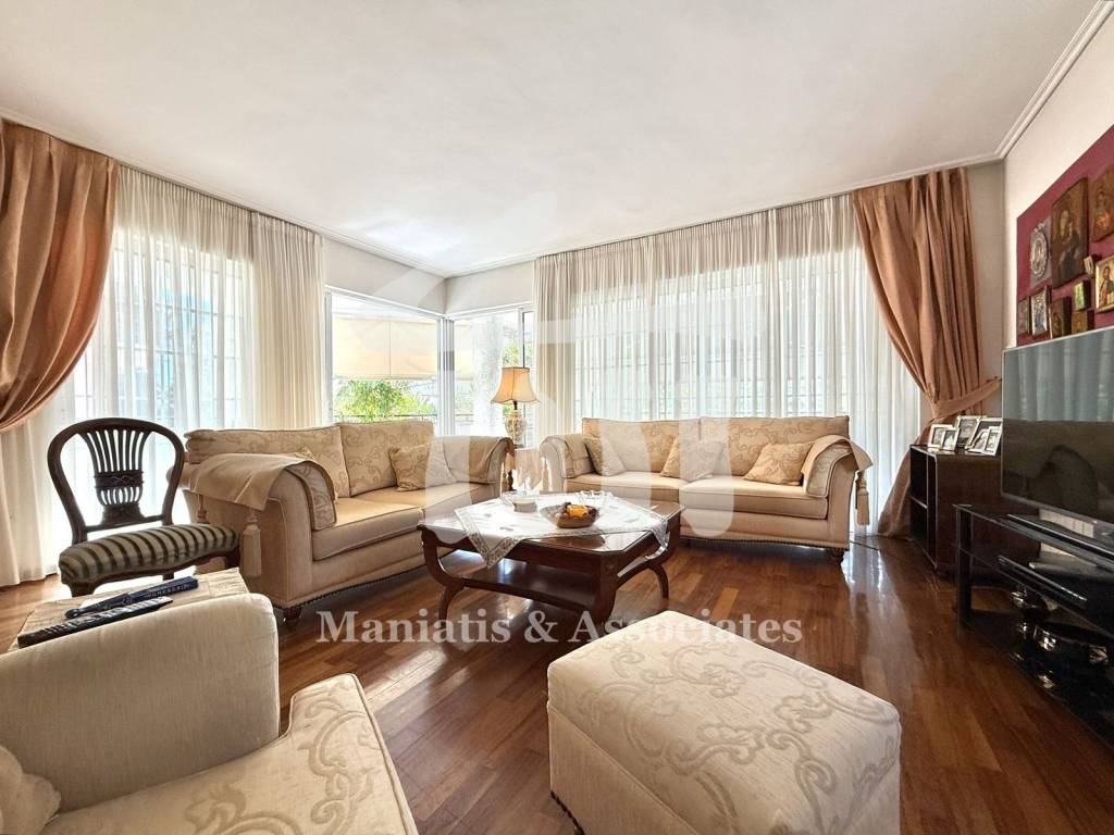 For Sale, Glyfada - Aixoni, Luxurious 112 sq.m. apartment, 1st floor, corner and bright, built in 1995, consisting of a spacious living room, a very large independent kitchen that has an exit to the terrace, 2 bedrooms with wardrobes that also have an exit to balconies and 2 bathrooms with natural ventilation. The heating of the property is autonomous with oil, the frames are aluminum with double glazing and it also has a fireplace. It has ample storage space as it also has a third wardrobe in the hallway, a loft and a storage room of approximately 5 sq.m. in the basement. The floors in the living room and bedrooms are parquet. It is located in a very quiet neighborhood, with an opening to its view. It belongs to a very small building with only 4 apartments and with a perimeter garden. It has very large verandas with awnings. The apartment is free from all sides, extremely airy and sunny. It is accompanied by a parking space in the basement. It is located in an excellent location, very close to the shopping center and the market, close to schools. Price: €465.000 Maniatis & Associates, Contact Phone: 2104190703, email: info@e-mesitis.com, website: www.e-mesitis.com