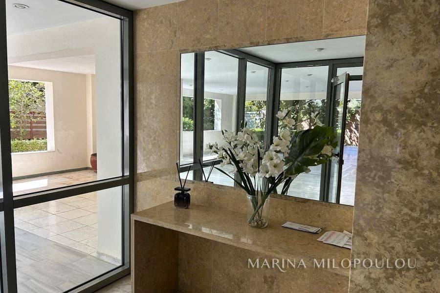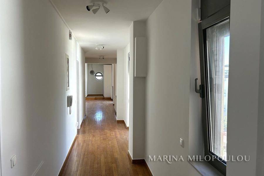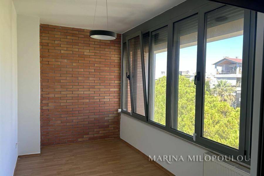 VOULA-borders with Glyfada, 3rd floor apartment, 187sqm with open horizon, Northwest orientation. It consists of a reception-dining room, closed kitchen with oven and stove, living room, 3 bedrooms, 1 office, 2 bathrooms and 1 wc. It features a security door, autonomous oil heating, fireplace, 5 A/Cs, double glazing, electric roller shutters, screens, awnings, solar water heater, large verandas in all rooms, storage spaces, alarm, basement storage, 2 underground parking spaces, elevator. It is part of a 4-story building with 4 floor apartments, 400m from the sea, 800m from the 5* beach of "One and Only Resort", 1 km from the shopping area of Glyfada, 1.8 km from the center of Voula.