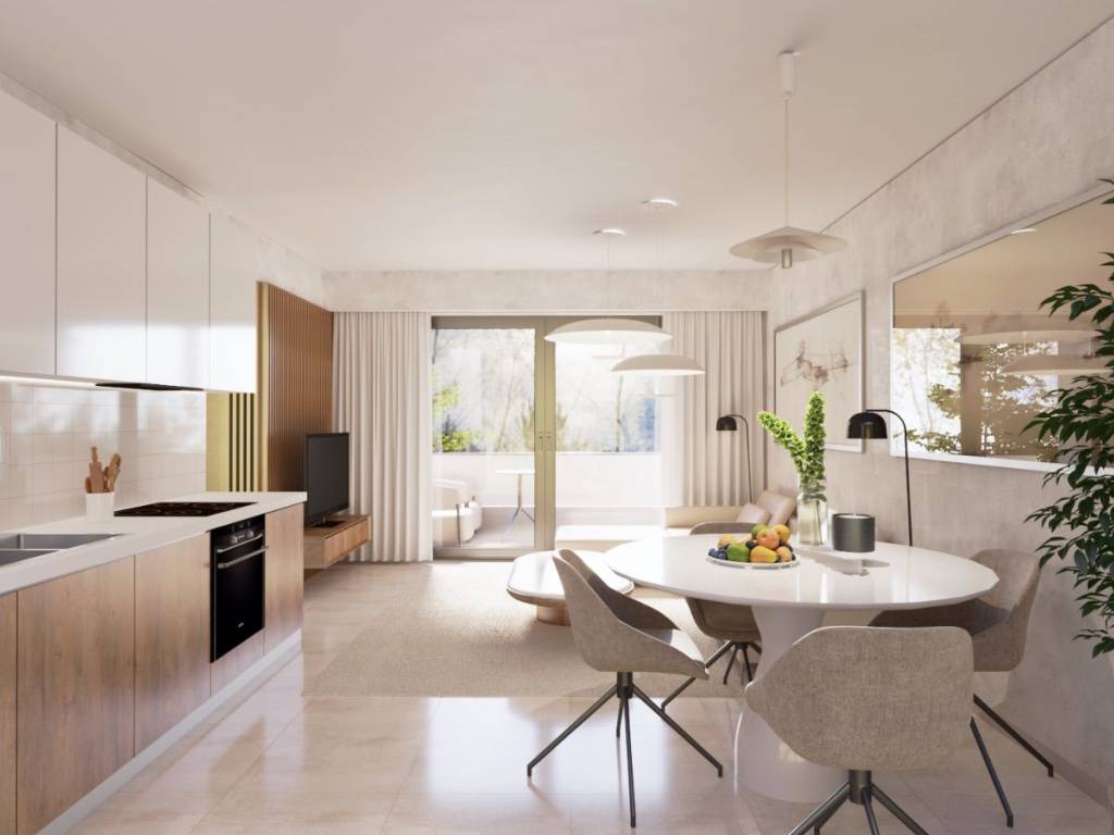 Discover this beautifully crafted, newly constructed apartment located on the 1st floor, offering 65 sq.m. of well-utilized space. The residence includes two bedrooms, one of which is a spacious master, alongside a fully equipped bathroom. The heart of the home is an open-plan living area, seamlessly integrating a modern kitchen and a comfortable dining/living space. Enjoy abundant natural light and outdoor access with balconies connected to both bedrooms, plus an additional balcony extending from the main living area, perfect for morning coffee or evening relaxation. Designed with an emphasis on functionality and aesthetic appeal, this apartment combines quality finishes, efficient layout, and excellent light flow. Ideal for couples or small families seeking a move-in-ready urban home with thoughtful details and contemporary charm.