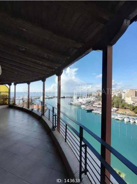 Piraeus, Pasalimani (Marina Zea) - Floor Apartment 120sqm bedrooms 3, levels 1, 7th (120sqm), penthouse, very good condition, year built 1980, energy class D, living room, hall, kitchen, bathroom, heating type: central (oil), air condition, quiet, dual aspect apartment, luminous, corner, sea view, frontage, painted, storage space, solar heater, balconies, large balconies, balcony 60sqm, elevator, aluminum frames, wood & mosaic floors, separate kitchen, secure door, luxurious, within city plan, residential zone, sea front (1st row), south-western orientation, access from asphalt, close to entertainment (up to 500m), close to market (up to 500m), close to sea (up to 200m), close to metro/train (up to 1000m), close to university/college (up to 1000m), close to square (up to 500m), close to sports facilities (up to 1500m), close to hospital (up to 1000m), close to banks (up to 500m), close to super market (up to 100m), close to bus stop (up to 50m), close to tram station (up to 1000m), close to school (up to 200m), close to national road (up to 2000m), close to port (up to 1000m).
