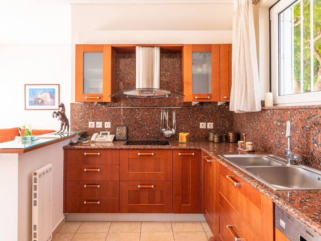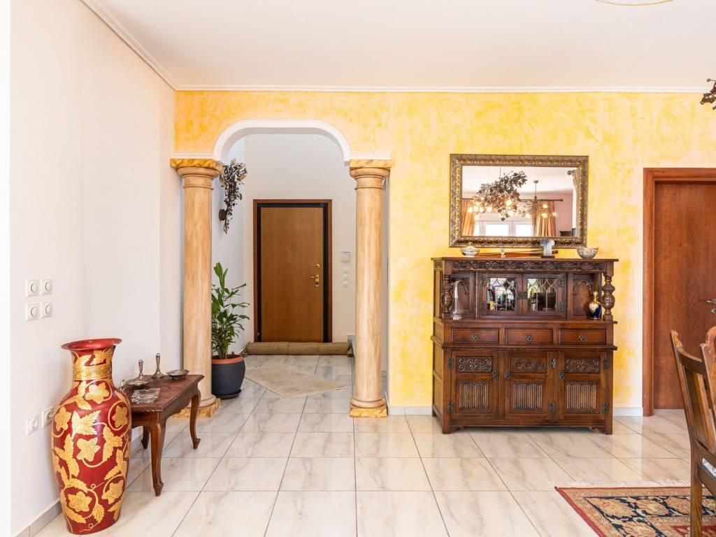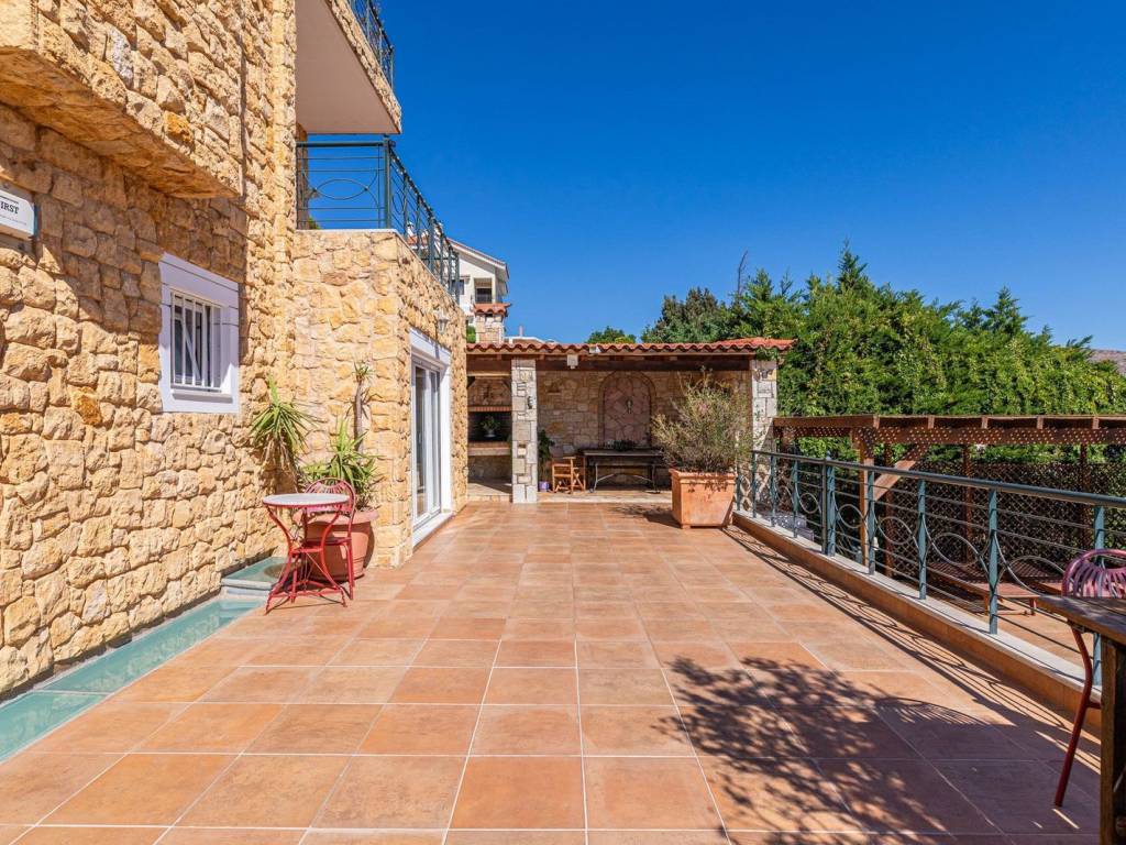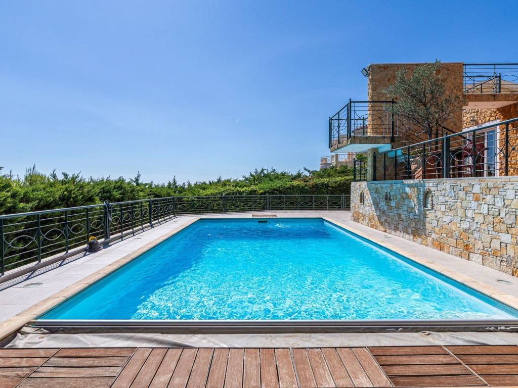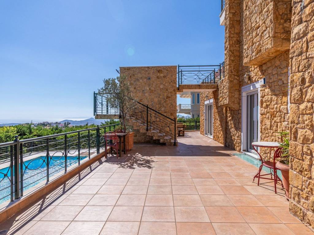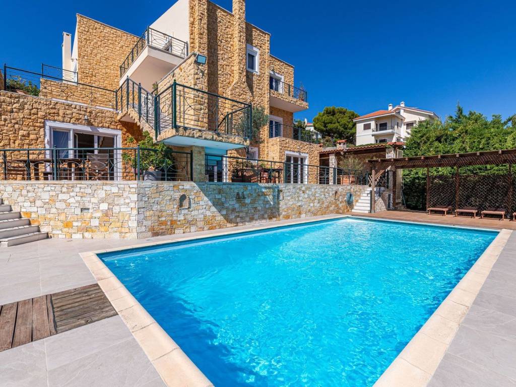 For sale in Drafi (Municipality of Pikermi) an amazing residence of 608 sq.m. on a 1,333 sq.m. plot, with swimming pool & sea view. This residence stands out for its elegance and functionality. It is developed across four levels, with an elevator serving all floors, and offers unobstructed views, particularly highlighted by the large balconies on the first floor. On this level, there are 3 bedrooms, including one master bedroom with oak floors, large wardrobes, air conditioning, and an additional bathroom. The ground floor features a spacious living room with fireplace, a kitchen with granite countertops and built-in appliances, as well as a WC. On the first lower level, there is an independent apartment ideal for guests or private living, consisting of an open-plan living room-kitchen with energy fireplace, 2 bedrooms (one master), and an additional bathroom. The second lower level includes a playroom, another large multipurpose area, storage room, and a maid’s room with its own bathroom. Heating is provided by an oil burner with independent control for each level. The residence features aluminum frames and a full security system with alarm, cameras, and outdoor protection radars. Additionally, it includes a high-power generator, 3 parking spaces in the closed garage and 1 outdoor space. The outdoor area is beautifully landscaped with a pergola, two BBQs, a traditional oven, a water cascade, and a large swimming pool with heating system and electric cover. An exceptional property, an exceptional opportunity. Drafi is one of the most beautiful and green suburbs of Attica, built on the southeastern slopes of Penteli. With excellent town planning and a unique view, it is an ideal place to live, combining a refreshing green area with large roads and luxurious single-family homes. It is a magnet for nature lovers, hikers, and for the waterfall on Achaeon Street, just 50 meters from the main road. The area has experienced significant residential development in recent years due to its excellent location that provides easy access to central commercial points, Attiki Odos and the Metro, Eleftherios Venizelos Airport, and the port of Rafina. It is within a stone's throw from the beaches of southeastern Attica. It is characterized as a "Model City" and offers a high level of living and comfort.