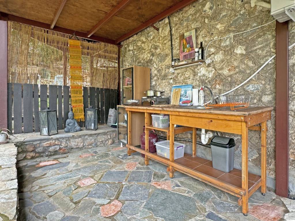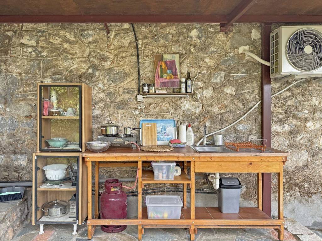 A charming two-floor house in Verga, Kalamata will be available for long-term and short-term rent. Set in the peaceful, authentic part of the village above the sea, the house is surrounded by nature, a natural water source, and hiking paths. With very little traffic, it is a perfect choice for those who appreciate traditional houses, tranquility, and a lifestyle close to nature. The house comes fully furnished, with air conditioning, and has a private garden where you can create your own little paradise. First floor: a cozy bedroom with a library, a bathroom with a hydromassage bath, a compact external kitchen, and a covered terrace. Second floor: a full kitchen with dining and sitting areas, plus a balcony offering sea and mountain views. What makes this house truly special is its soul: it is filled with artworks created by the family of the owner, an artist in the third generation. From time to time, you will have the privilege of having her as your neighbor, as she divides her life between traveling and living in her private studio next to the house. Her presence adds to the artistic and authentic spirit of this unique place, while for the rest of the time, you will enjoy complete privacy.