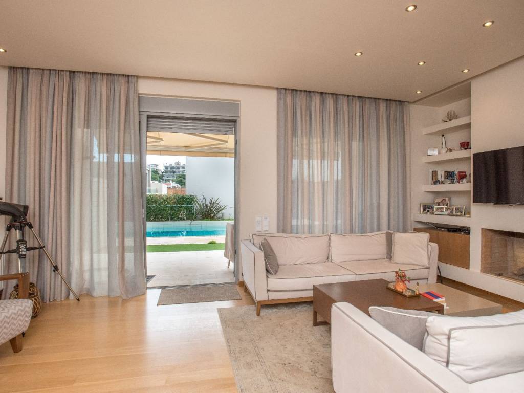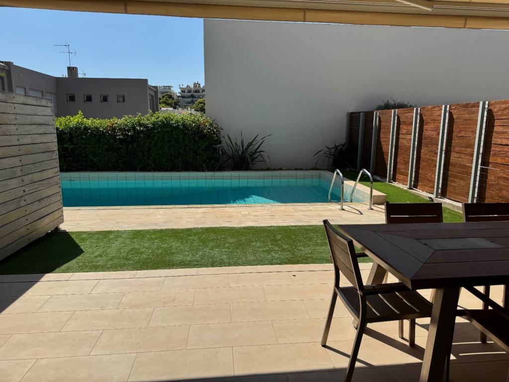 Turnkey Smart Home Maisonette with Pool in a Prime Residential Area of Varkiza Varkiza (Kamini) | 216 sq.m. | 4 Bedrooms | €1,295,000 Located in one of Varkiza’s most discreet and prestigious residential pockets, just below Fleming and close to Vouliagmeni, this exceptional maisonette offers a rare combination of quality construction, smart technology and privacy. The residence spans three levels and benefits from abundant natural light throughout. Ground Floor: A bright and spacious living area with fireplace, opening directly to a private garden and a swimming pool (31 sq.m.), shared with only one neighboring residence. Separate dining area and a contemporary kitchen with oak cabinetry and Italian synthetic granite countertops. First Floor: Three bedrooms, including a master suite with en-suite bathroom, plus an additional shared bathroom. Lower Level: A fully functional space with natural light, ideal as a fourth bedroom, guest suite, playroom or home office, with its own bathroom. Direct internal access to covered parking, storage room and boiler room. Key features include:  Full Smart Home system  Mitsubishi central heating & cooling  Automated shading systems  Oak floors & marble details  Alarm & security cameras  Covered parking space The property enjoys a quiet, family-friendly setting, just 900 meters from the beach, close to the commercial center of Varkiza, and with easy access to Glyfada and Athens International Airport. An ideal turnkey home for families or buyers seeking quality, space and lifestyle on the Athens Riviera.