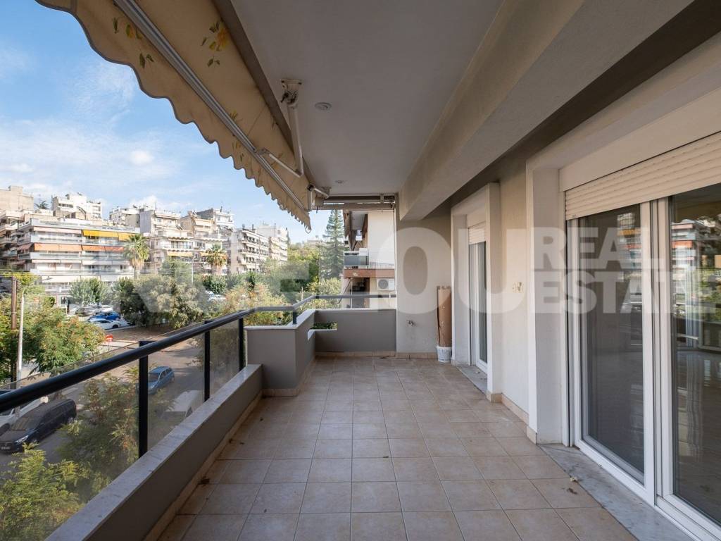 Luxury apartment for rent, 185 sq.m., 3rd floor, in the area of Harilaou. The property features: • Spacious living room of 70 sq.m. with energy fireplace • Large, separate kitchen • Three large bedrooms with wardrobes • Two bathrooms with bathtub and an additional WC • Autonomous natural gas heating & air conditioning • Very large balcony with awnings and insect screens Additional amenities: • Storage room of 8 sq.m. in the basement of the building • Private parking space in the pilotis A bright, comfortable and functional apartment, ideal for a family, in an excellent location close to schools, market, and public transport. ANGELOU REAL ESTATE Tel.: +302310263215, +302310263775 Mob.: +306945385155 www.angelou-realestate.gr, email: info@angelou-realestate.gr Mitropoleos 46-48, Thessaloniki, 54623, Greece