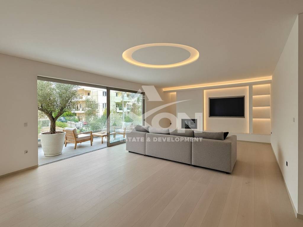 Luxury newly built apartment of 128 sq.m. on the 1st floor, located in an excellent area of Ano Papagou — one of the most sought-after neighborhoods in the Northern Suburbs. The residence stands out for its modern design, exceptional construction quality, and complete energy autonomy, featuring an A+ energy certificate, heat pump, and underfloor heating. This floor apartment includes three bedrooms, one of which is a master suite, two bathrooms, a guest WC, a spacious kitchen, and a bright living room with large glass openings and an energy fireplace, creating a sense of warmth and refined aesthetics. It also offers two private parking spaces and a large storage room, ideally complementing the newly built home and ensuring luxury and comfort in everyday living. The property features thermally insulated aluminum frames with double energy glazing, high-quality floors that combine tile and wood, and an airy, sunlit interior filled with natural light. The surrounding area is carefully landscaped, creating a unique sense of privacy and tranquility. The location provides immediate access to the metro, Attiki Odos, public transport, schools, parks, squares, and leisure areas, offering a high standard of living and daily convenience. Discover your new luxury home that combines energy efficiency, safety, and refined aesthetics in the heart of Ano Papagou. For immediate and personalized assistance, contact Axon Real Estate at 2109229058 or info@axon.com.gr. Our experienced team responds promptly and reliably, offering tailored solutions and guiding you through every step of your property search until you find your ideal home. A specialized consultant is always available for an immediate appointment and professional consultation, ensuring a truly superior buying experience.