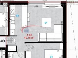Zweizimmerwohnung neu, zweite Etage, Zentrum, Thermi