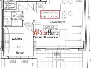 Zweizimmerwohnung neu, erste Etage, Zentrum, Kalamaria
