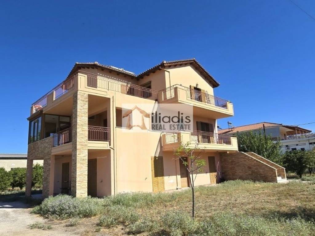 Nayplio - Detached House 285sqm plot 5000sqm, bedrooms 3, master bedroom, levels 3, ground floor - 1st - 2nd, excellent condition, year built 2005, energy class D, living room, hall, kitchen, bathroom, wc, heating type: individual unit, heating medium oil, air condition, parking open space, quiet, dual aspect apartment, luminous, view unobstructed, frontage, painted, solar heater, fireplace, large balconies, garden, frames aluminum, double glazed windows, door screen, floor type wood & tile, without common charges, secure door, luxurious, residential zone, southern orientation, access from asphalt. In a privileged location and at a short distance from the city of Nafplio, a detached house with a total area of 285 sqm is for sale. This is an excellent construction consisting of three levels that communicate with each other by an internal staircase. The ground floor of 95 sqm can be an independent apartment with direct access to the garden, as it is in an unfinished state with the basic amenities and external parts such as aluminum frames, external plastering and painting pending. The 1st floor of 95 sqm consists of three bedrooms, one of which is a master with a private bathroom, all of which have access to a large terrace around the perimeter of the floor and a bathroom. The 2nd floor of 95 sqm consists of a living room with fireplace and dining room, in contact with a kitchen area and wc. The floor has a visible wooden roof and direct access to a spacious terrace with an unobstructed view of Palamidi Castle, the city of Nafplio and parts of the sea of the Argolic Gulf and the landscape that intervenes and surrounds it. The large terraces and many openings provide light and air throughout the house. The house has aluminum frames with double glazing and screens, wooden and tiled floors, oak doors, functional built-in bedroom wardrobes, solar water heater, oil heating via individual burner, air conditioners and provision for the installation of an elevator. It is located outside the plan, within a plot of approximately 5.000 sqm in a fully fenced and landscaped surrounding area with 120 roots of orange and olive trees and ample parking space. It is an excellent choice for a permanent or holiday home as it is located in a quiet, safe location, offering privacy. It is just 5 minutes from the city center of Nafplio and about 10 minutes from the nearest organized beach, Arvanitia.