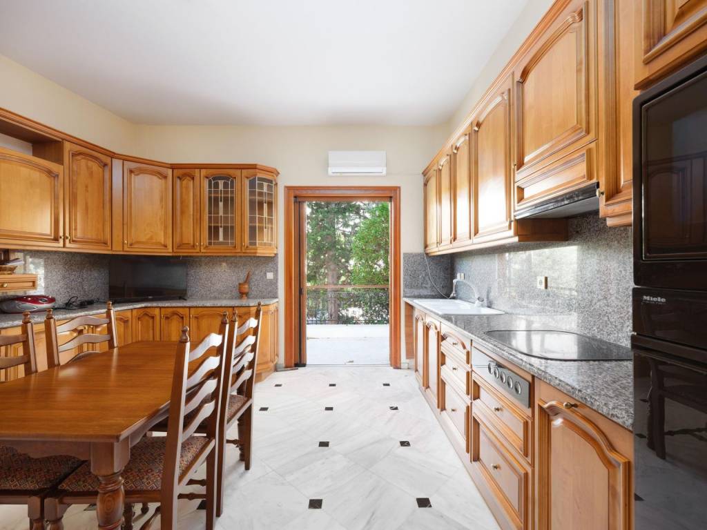 Engel & Volkers presents this exceptional traditional villa of 500 sqm within a corner plot of 730 sqm and garden 530 sqm, in the privileged location of Nea Kifisia. The property extends over 3 levels: basement, ground floor and first floor. The basement has 1 bedroom, 1 playroom, 1 bathroom, 1 storage room, the boiler room and a garage with capacity for 2 cars. The ground floor consists of a very spacious living room with a fireplace, a kitchen, 1 large bedroom that can also be used as an office, 1 bathroom and a laundry room. The internal staircase leads to the first floor, which has 3 comfortable bedrooms, all with their own balconies, 1 living room with fireplace, 1 utility room and 2 bathrooms. The main features of the property are as follows: Alarm system, 8 new conditioning units, autonomous central heating with oil, triple action solar water heater, wooden window frames, double glazing, screens in the kitchen and living room on the ground floor, 2 fireplaces, high quality materials, solid wood kitchen cupboards and all the wardrobes as well as the internal staircase, built-in electrical appliances Neff and Miele, hydro-massage, Dionysos type marble flooring, wooden floors in the bedrooms and tiles in the basement, Moda Bagno bathrooms, 8 balconies, 4 storage rooms, 530 sqm garden with trees and flower beds. Large pets are only allowed outside, as only small pets are allowed inside the house. The monthly common expenses are €270, that include the cost of the gardener which is €170/month and the municipal fees that are €100/month. The property is located near Heroes Square and very close to Nea Kifisia Square. It has easy access to Saint Catherine's School as well as direct access to the National Highway. This is a property that will impress you and is truly worth your attention. We would be happy to call us to schedule an appointment, so we can show you this amazing villa. Kifisia is one of the most prestigious suburbs of Northern Athens, a quiet, green oasis and a commercial hub, just 12 kilometers away from the city center. Nea Kifisia is located in one of the greenest and quiet areas of Kifisia, having beautiful houses around. Full of perennial trees and wide streets and direct access to downtown Kifisia as well as the developed market of Nea Erythrea. A refreshingly green area with several parks, large public squares, an upscale open-air shopping district with all kind of stores, banks, refined restaurants, trendy bars, sports clubs and fitness centers. It is close to most international schools and attracts a lot of foreign residents. It has easy access to the road network of all the northern suburbs and convenient access to the national road leading to Athens or Piraeus.