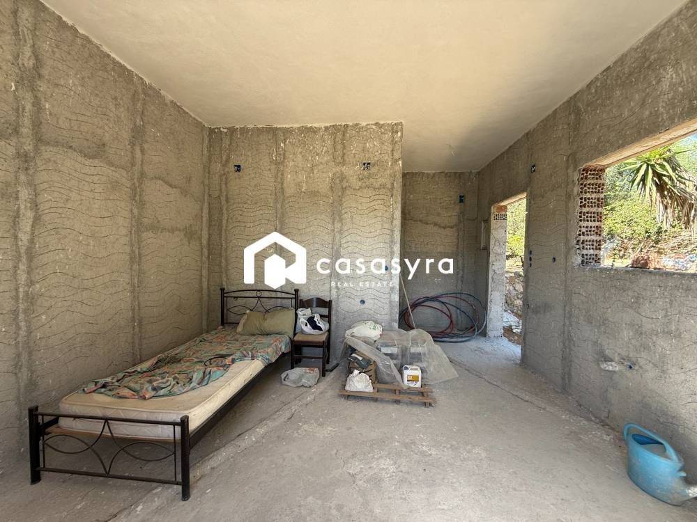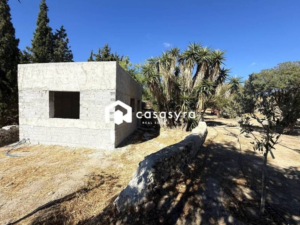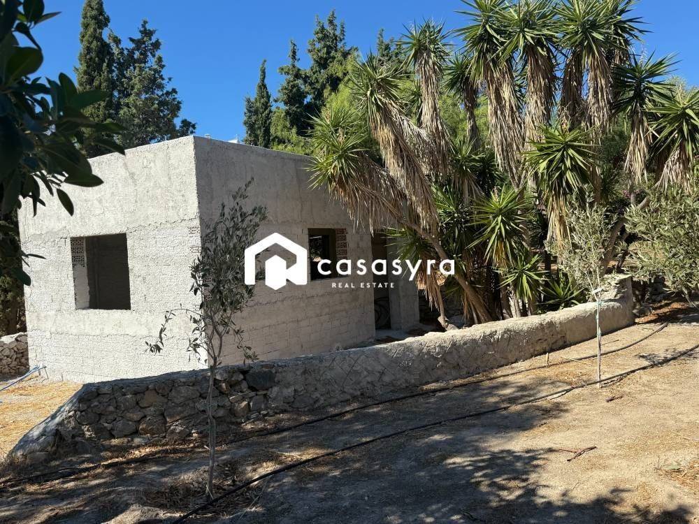 FOR SALE detached unfinished house of 35 sq.m. on a tree-lashed plot of 2,648 sq.m., in the most lushing area of Chroussa in Syros, with its infamous estates and mansions.