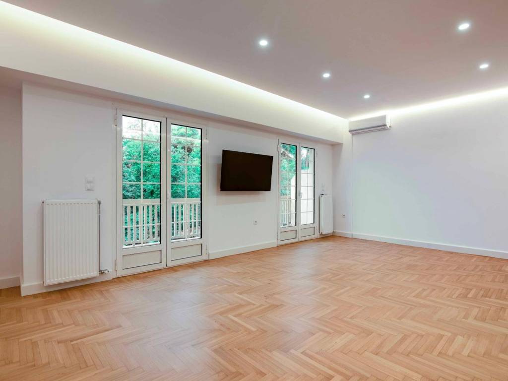 Overlooking the lush treetops of Alsos Pangrati, this beautifully renovated 85 sqm apartment offers a rare blend of style, comfort, and prime urban living. Situated on an unexpectedly high 1st floor of a well-maintained 1960s building, the property underwent a state-of-the-art renovation in 2025, with contemporary design and high-end finishes. The heart of the home is a spacious open-plan living and dining area, flooded with natural light through two large balcony doors that open to stunning views of the park. At the back of the apartment, two serene bedrooms offer quiet privacy and direct access to a second balcony. The modern kitchen is fully equipped with appliances, while each room is fitted with air conditioning units and TV sets for maximum convenience. Additional features include a storage cupboard, autonomous gas heating, and solar water heating system for year-round comfort. Set in one of Athens' most sought-after neighborhoods, you’ll be surrounded by charming cafés, acclaimed restaurants, and every amenity urban life has to offer—all just steps from your door. This is a true turn-key property, perfect as a stylish city residence or an investment with excellent rental potential. Location: Pangrati is a vibrant neighborhood in the center of Athens with a rich history and multicultural character. It is located within walking distance from the elegant Kolonaki area, offering easy access to entertainment, cultural, and recreational options. The neighborhood boasts a unique atmosphere with its traditional streets, picturesque squares, and rich culinary scene. Situated just 10 minutes away on foot from the city center, Pangrati is across from the National Garden and behind the Kallimarmaro Stadium as well as the National Gallery. Unique features: Pangrati, also known as Vathrahonisi or the “Island of Frogs” is an emerging creative area filled with traditional cafes, bars, and parks. It maintains the genuine neighborhood feel, providing easy access to schools, supermarkets, galleries, and museums such as the Museum of Modern Art of the Goulandris Foundation. Moreover, it is within close proximity to most attractions in the area. Accessibility: The area enjoys excellent connectivity with the metro, tram, and buses serving the entire Athens area. The airport is approximately a 50-minute journey by train or bus. Investment potential: Pangrati is one of the most sought-after investment locations in central Athens. The dynamic nature of this area is undeniable, with stable returns ensuring the success of your investment.