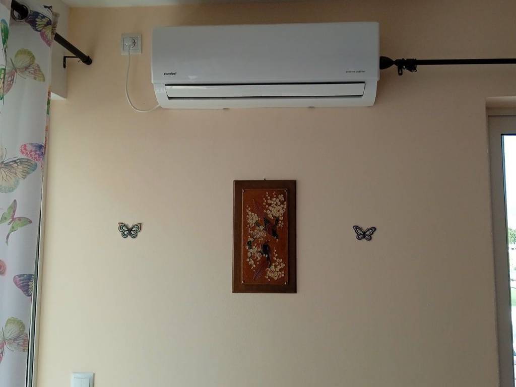 50 sq.m. apartment for rent, located within walking distance of the city center.The property features an open-plan living room and kitchen with air conditioning, one bedroom, and a bathroom. It is fully furnished and equipped with all necessary appliances and amenities. There is a balcony with mountain and sea views. Τhere are no insect screens on the large glass door. Available until June.