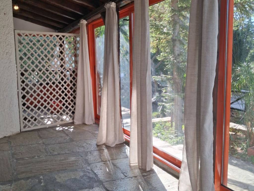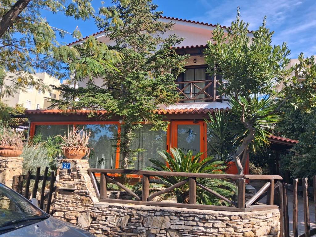 Διώροφη κατοικία σε ρουστίκ στυλ με βάση το ξύλο και την πέτρα. Ευρύχωρη, με μεγάλες ντουλάπες και αποθηκευτικούς χώρους. Πρόσφατα αναικαινισμένη κουζίνα ενιαία με το σαλόνι. Μεγάλο τζάκι. Στην αυλή διαθέτει πέργκολα με κληματαριά, ξυλόφουρνο και χώρο για BBQ. Ο κήπος έχει δέντρα και φυτά και δυο μεγάλες ζαρντινιέρες στην πλευρά της κουζίνας. Το στέγαστρο στον χώρο στάθμευσης είναι καινούριο. Το σπίτι κατασκευάστηκε για ιδία χρήση από μηχανικό αρχιτέκτονα και δόθηκε έμφαση στην αντισεισμικότητα του κτηρίου. Η στάση του Metro είναι στα 10 λεπτά με τα πόδια.