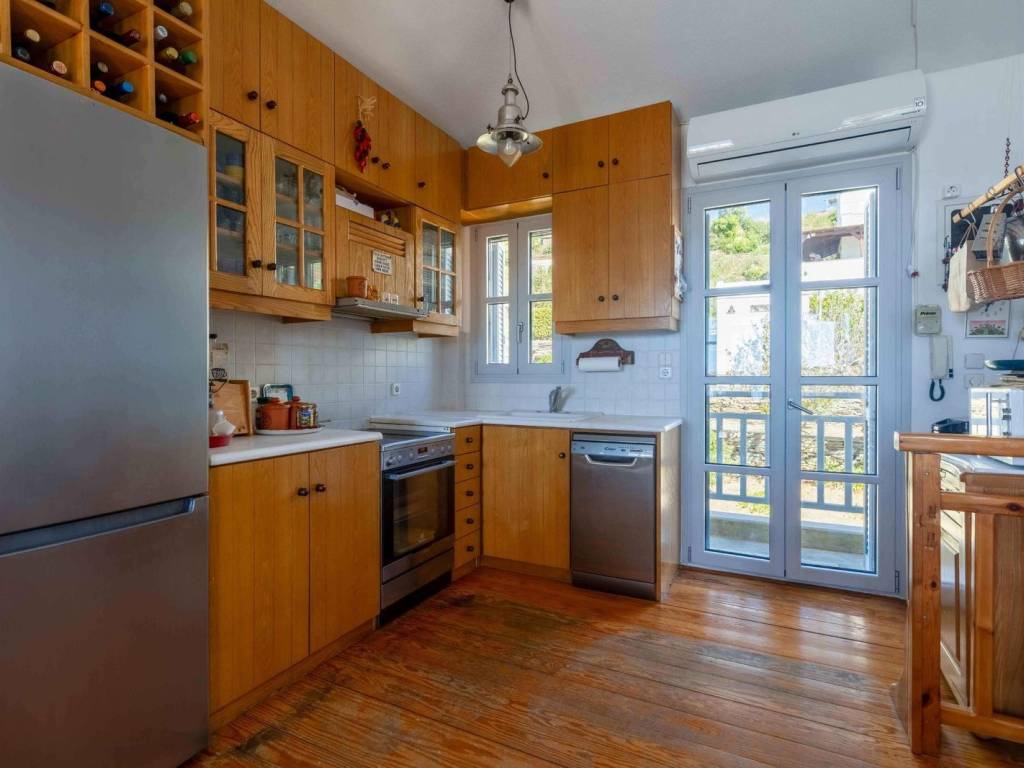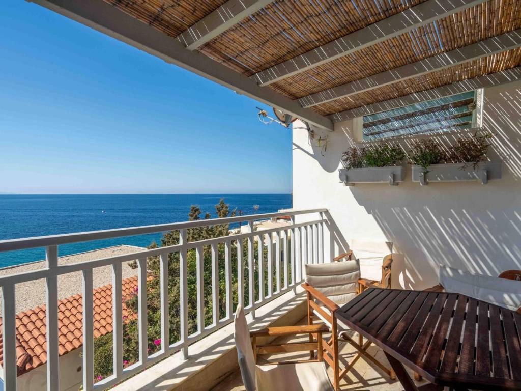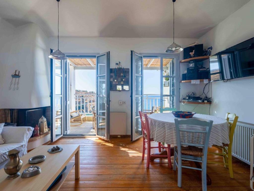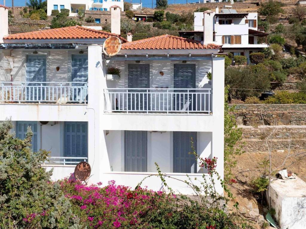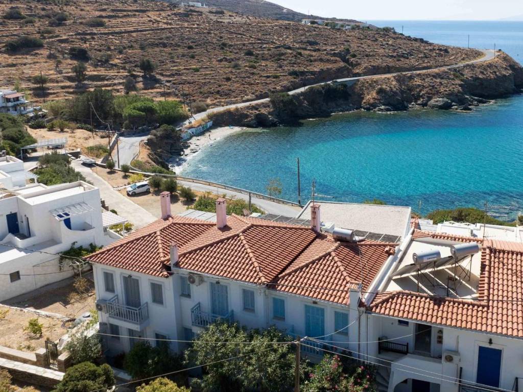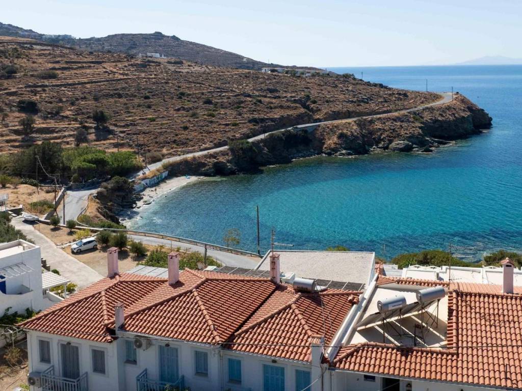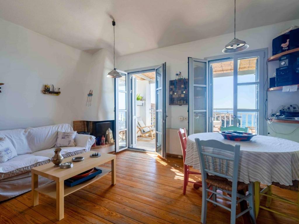 An exceptional 100 sq.m. maisonette located just above a small beach in Batsi, Andros, offering unobstructed views of the sea and sunset. Spanning three levels, the residence includes two bedrooms, two bathrooms, and an additional spacious room on the ground floor that serves as a combined living and guest area. The open-plan living room with a fireplace and built-in kitchen extends to balconies and a courtyard with direct access to the beach. The property is equipped with a Daikin heat pump, new energy-efficient windows, air conditioning, wooden floors and staircase, as well as a 3-cubic-meter water tank. It is only a five-minute walk from the center of Batsi, combining peace and privacy with easy access to all amenities. A serene and versatile home, ideal both as a permanent residence and as a vacation retreat with authentic island character. Location: Andros is the northernmost island of the Cyclades, in the Aegean Sea, and the second largest after Naxos. Unique Features: Andros is a miniature of Greece. The traditional Cycladic landscape and architecture blend with high mountains, rivers, valleys, springs with running water, and many stunning beaches under a bright sun. Its famous and impressive 200-kilometer network of trails, known as Andros Routes, certified by the EU, attracts hikers from around the world to discover the hidden beauties of the island. The capital of the island, Chora, is one of the most beautiful in the Cyclades. It features museums such as the Archaeological Museum and the Museum of Contemporary Art, with new exhibitions every summer. The unique, one and a half mile pedestrian street in the city center guides you through traditional Cycladic architecture and history, with many restaurants, cafes, and shops. Enjoy the seaside restaurants with fresh fish in Korthi, and the cosmopolitan nightlife in the picturesque seaside Batsi. Accessibility: Andros is accessible from the port of Rafina and is the closest Cycladic island to Athens. There are at least four daily ferry routes during the summer season and at least two during the winter. The trip takes just two hours. It is also connected by ferry to Tinos and Mykonos. Investment Opportunity: The cosmopolitan character of the island and its impressive beauty make it a magical tourist destination, with strong investment interest.